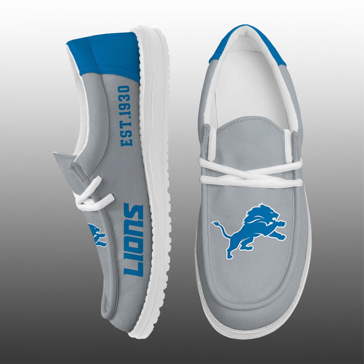 Celebrate your love for the gridiron with this shoes, a vibrant tribute to Detroit’s legendary football legacy. Drenched in the team’s signature Honolulu blue, these kicks feature crisp white laces and soles that pop with contrast. One shoe proudly displays “LIONS” in bold vertical lettering, crowned by “EST. 1930”—a nod to the team’s historic roots. The other showcases the iconic leaping lion logo, charging forward with unmistakable energy. Whether you’re tailgating or tackling your day, these shoes are a touchdown in fan fashion.