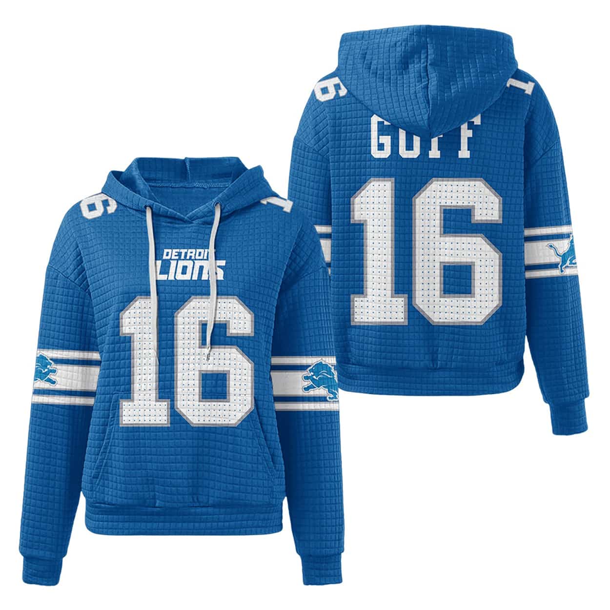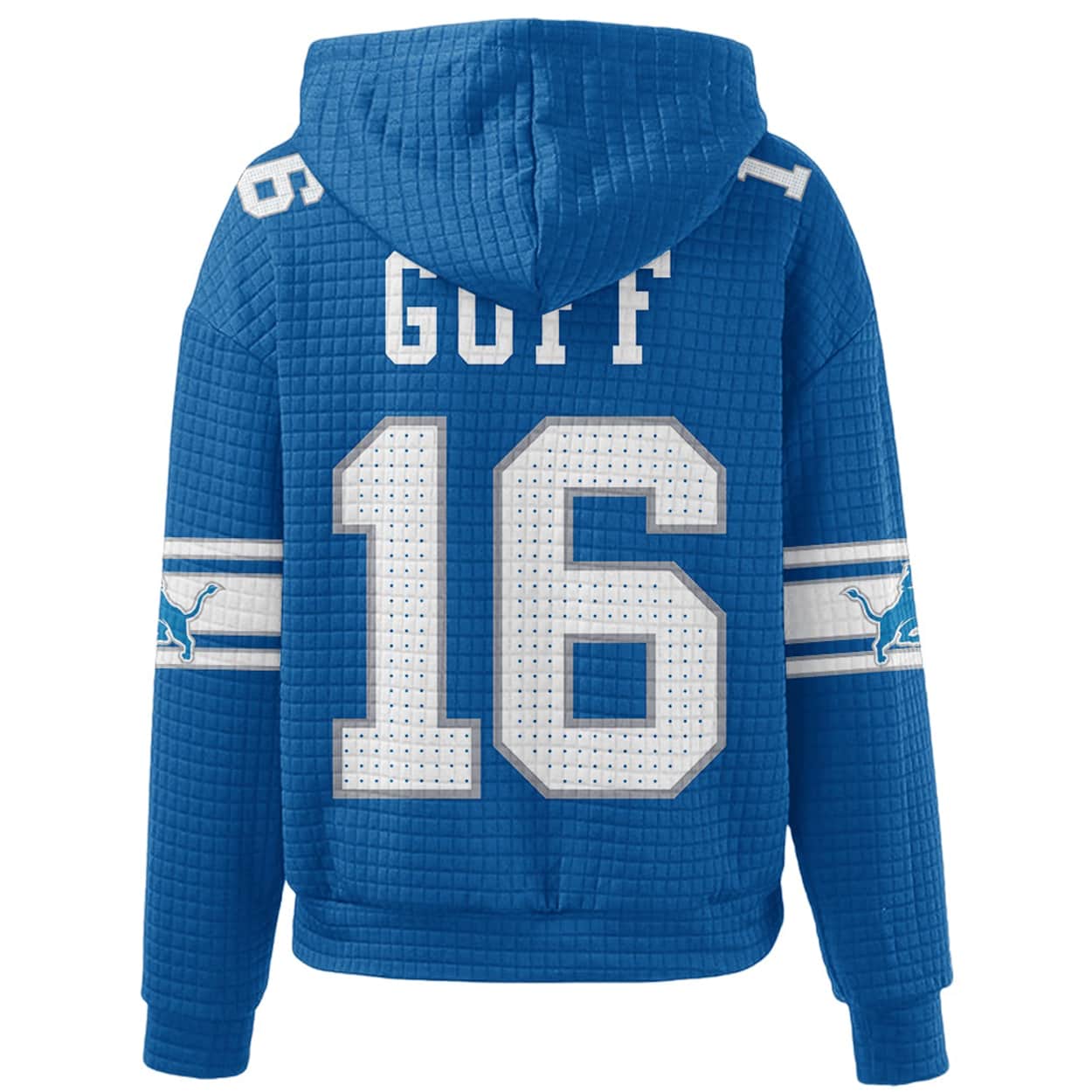Show off your Lions pride with the Lions Jared Goff 16 Waffle Hoodie — a bold, fan-favorite statement piece that blends sporty swagger with unmistakable team spirit.