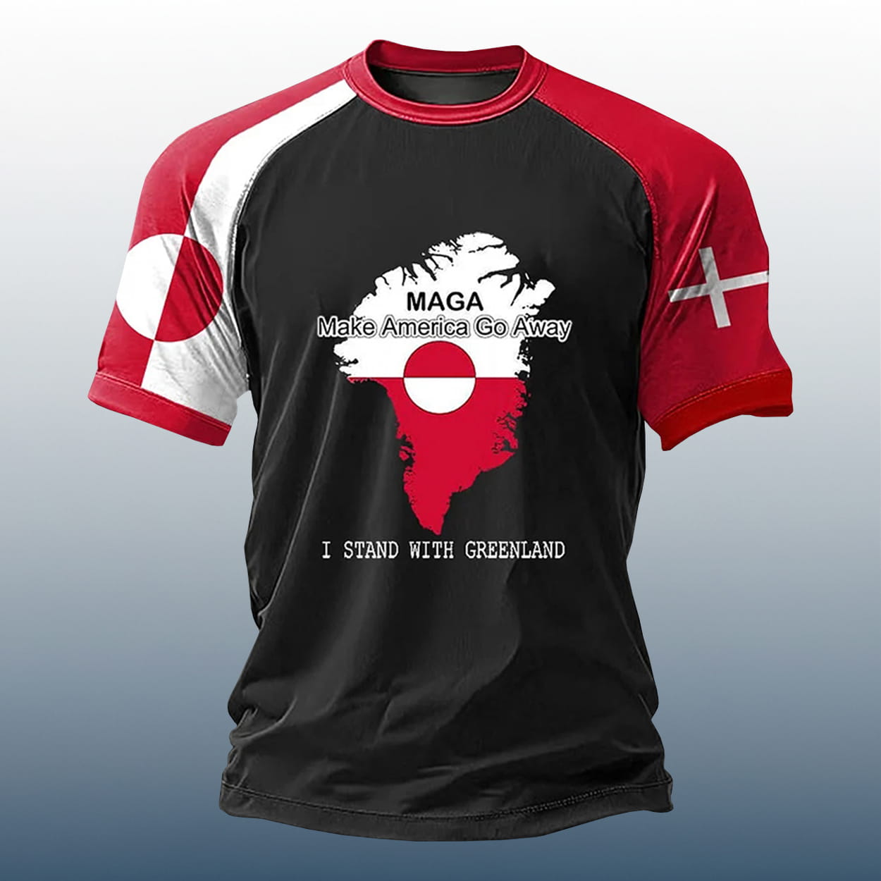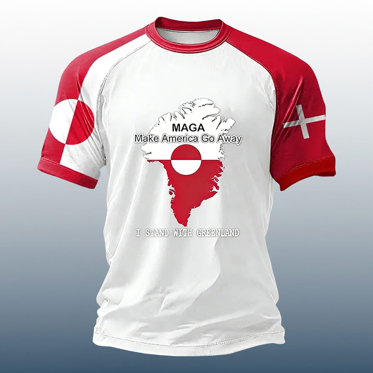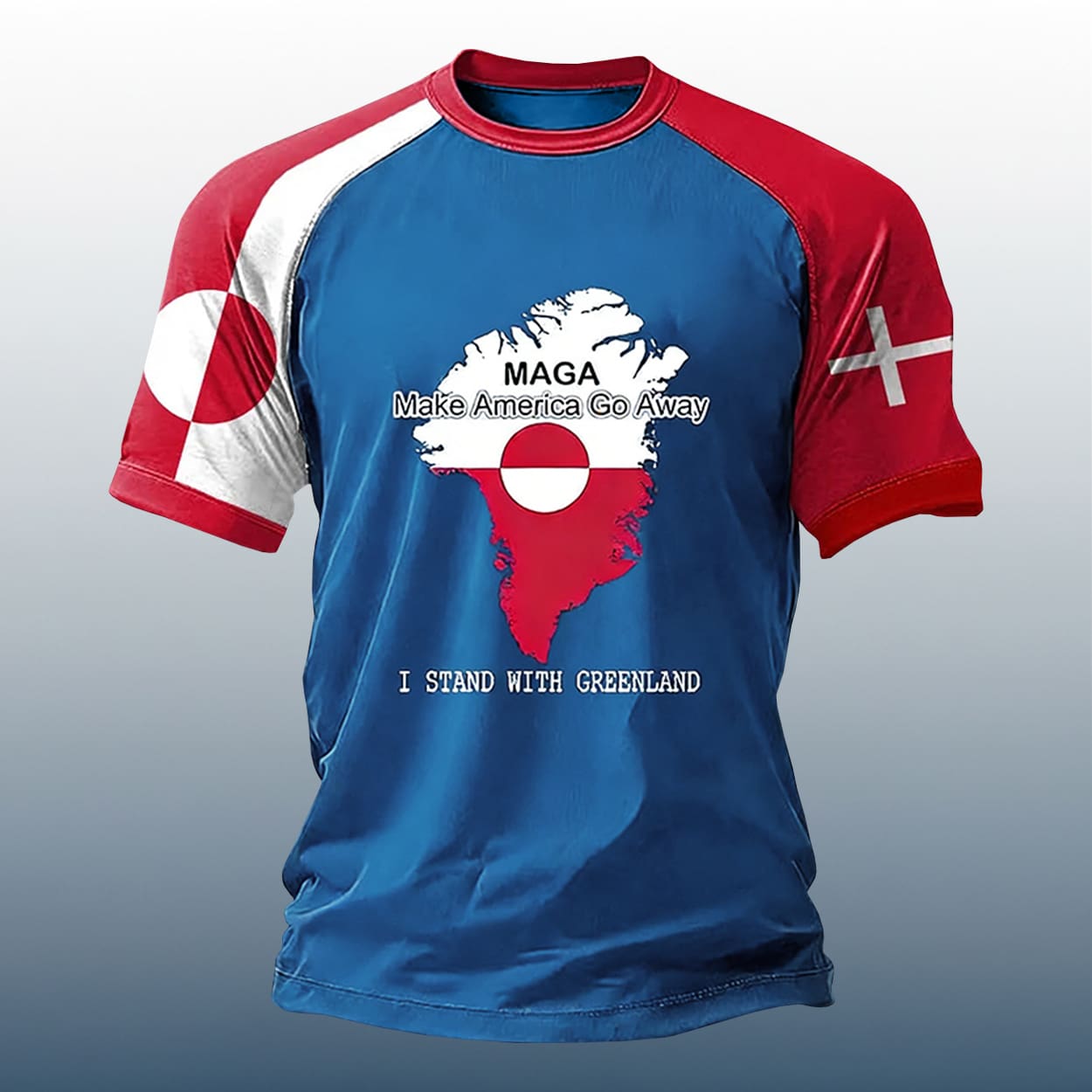 Discover the MAGA Make America Go Away I Stand With Greenland Shirt. A satirical statement piece featuring the Greenland map and flags, perfect for those who “Stand With Greenland” and appreciate global wit.
