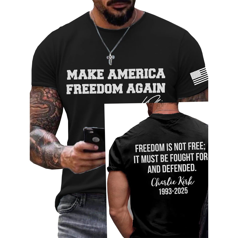Step into the spirit of liberty with the Make America Freedom Again Charlie Kirk Signature Shirt—a striking red tee that speaks volumes. On the front, the phrase “MAKE AMERICA FREEDOM AGAIN” stands proud, paired with a subtle American flag on the sleeve. Turn heads with the back message: “FREEDOM IS NOT FREE; IT MUST BE FOUGHT FOR AND DEFENDED. Charlie Kirk 1993–2025.” It’s not just a shirt—it’s a wearable tribute to a voice that inspired a generation.