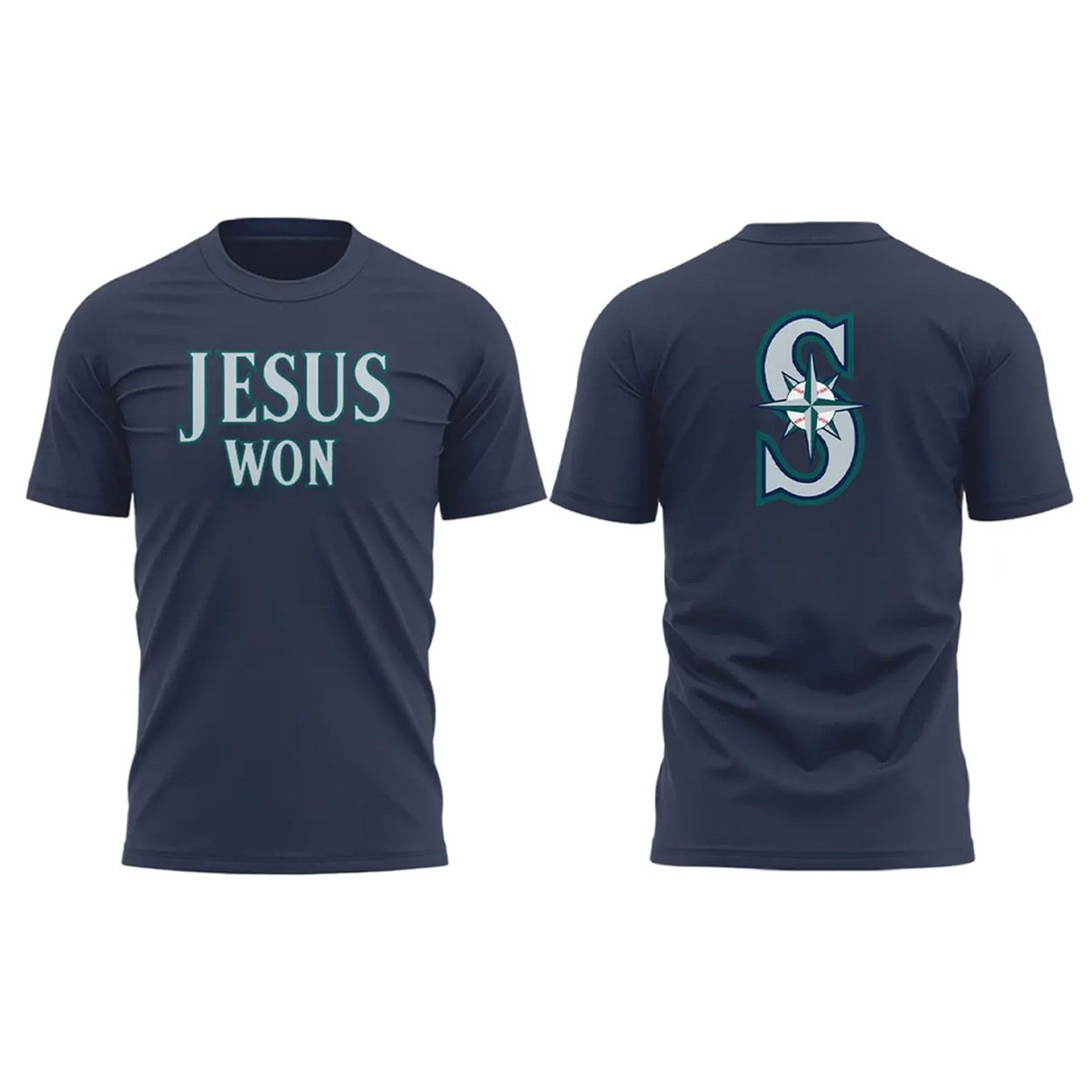 Celebrate faith with flair in the Mariners Jesus Won Two-Sided Shirt—a bold blend of sports-inspired style and spiritual conviction. Perfect for fans who love Jesus and baseball.
