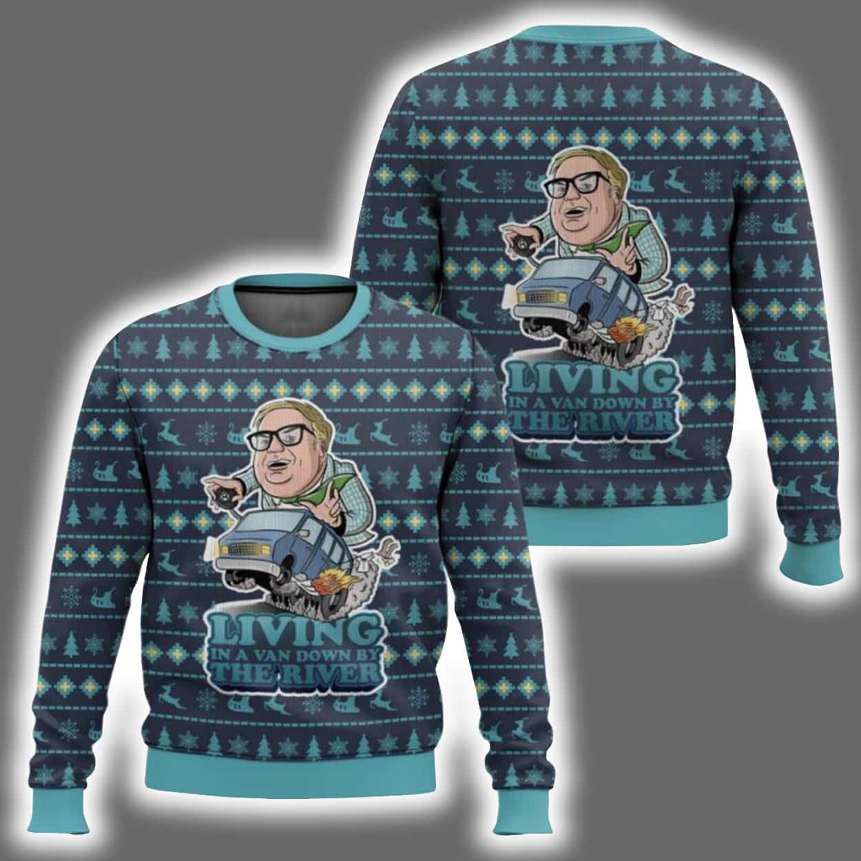 Bring legendary sketch comedy to your holiday wardrobe with the Matt Foley Living In A Van Down By The River Saturday Night Live Ugly Christmas Sweater—perfect for fans of Saturday Night Live and chaotic holiday energy.