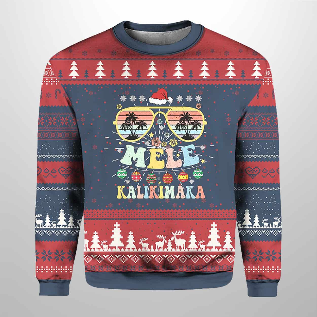 Bring a taste of the tropics to your winter celebration with this Mele Kalikimaka Ugly Christmas Sweater, blending Hawaiian holiday cheer with classic festive knit patterns.