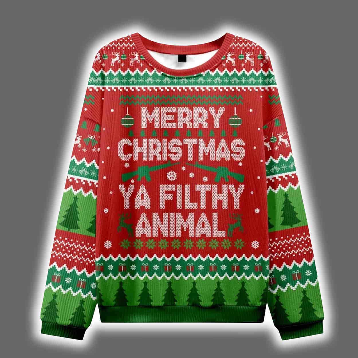 Naughty, Nice, and Totally Iconic: The Merry Christmas Ya Filthy Animal Ugly Christmas Sweater