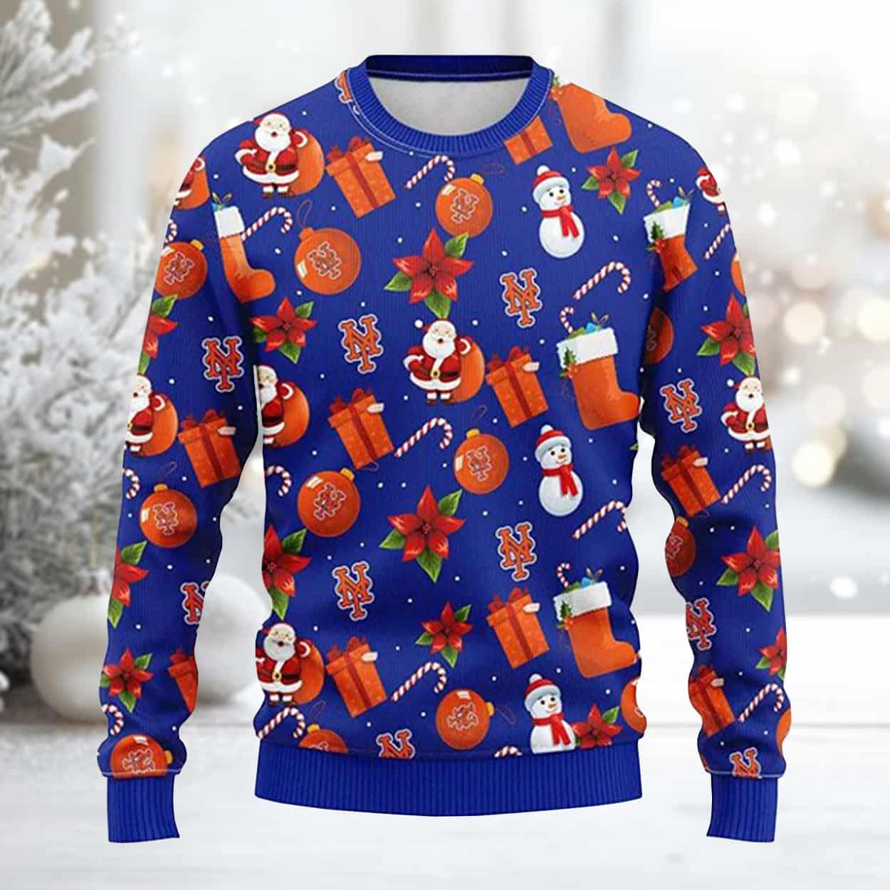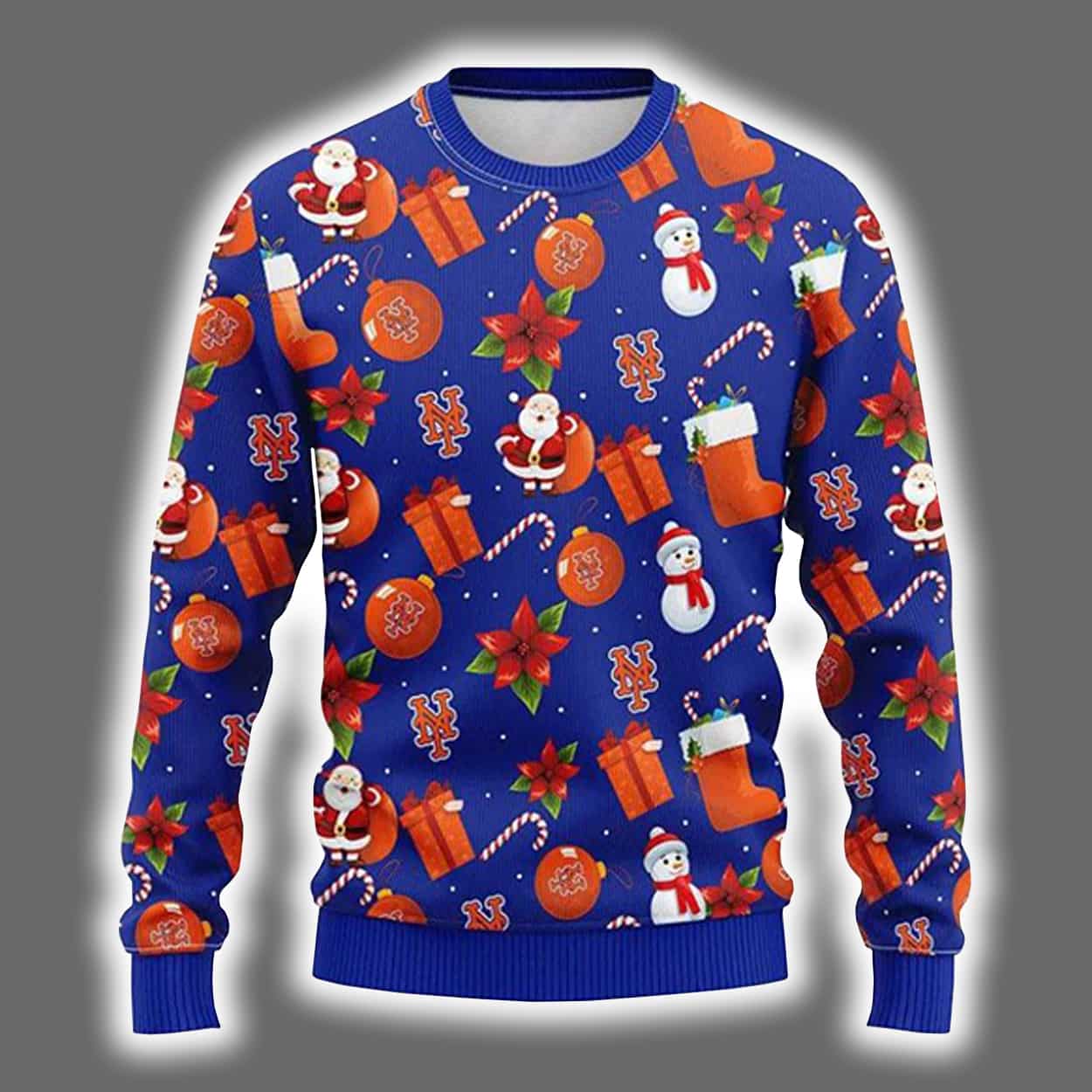 Mets Santa Claus Snowman Ugly Christmas Sweater