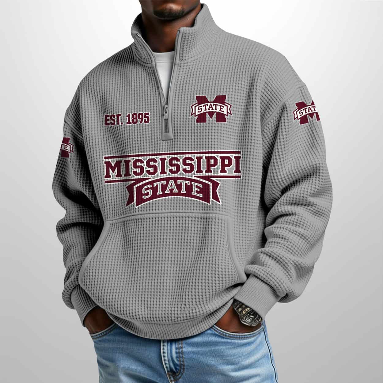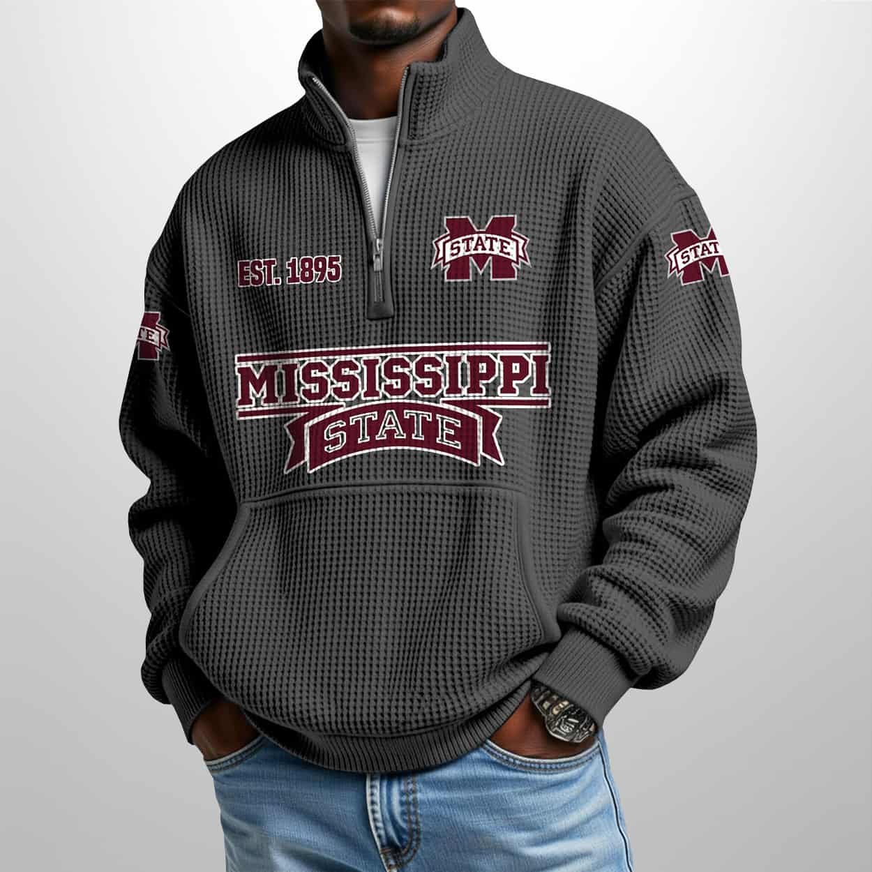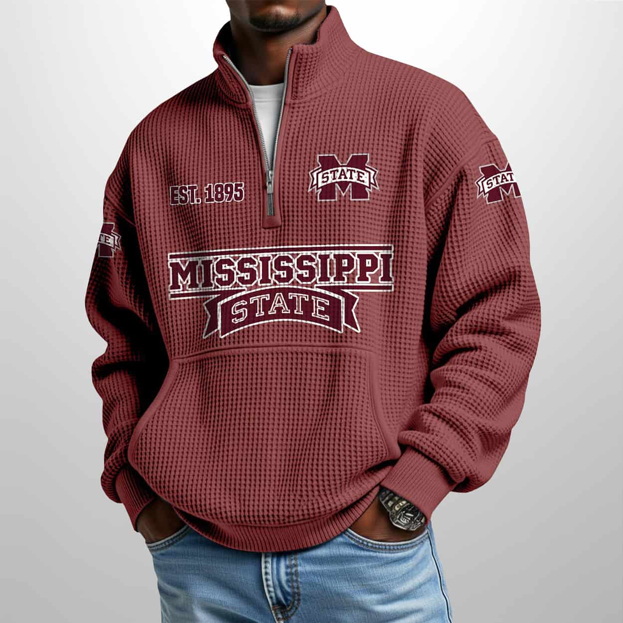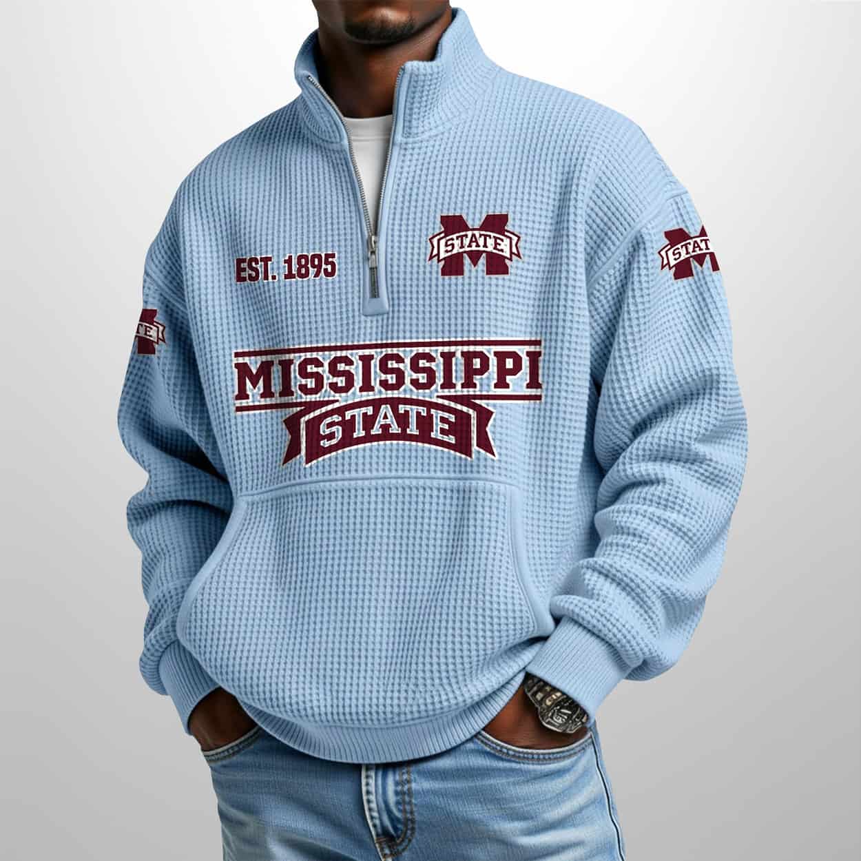 Be the first to review “Mississippi State Est 1895 Waffle Stand Collar Half Zip Sweatshirt” Cancel reply