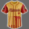 This jersey is more than apparel—it’s a heartfelt tribute to firefighters who risk it all. The mustard-yellow hue reflects the fiery courage of these heroes, while the stars and stripes weave in a patriotic flair, honoring their service to the nation. The fire axe graphic on the back adds a touch of grit, reminding us of the tools that define their trade. Designed for bold thinkers who value community and bravery, this piece celebrates the Nationals’ 2025 Firefighter Appreciation Night, blending team pride with a salute to local heroes in a way that’s both stylish and meaningful.