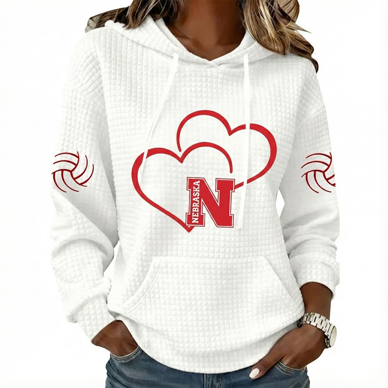 Nebraska Volleyball Heart Print Waffle Hoodie