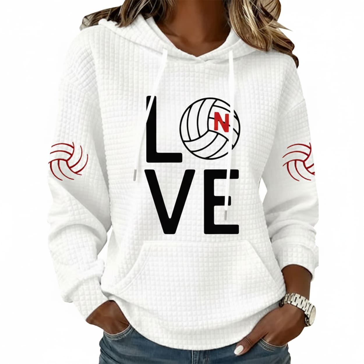 Serve Up Style: Nebraska Volleyball Love Print Waffle Hoodie