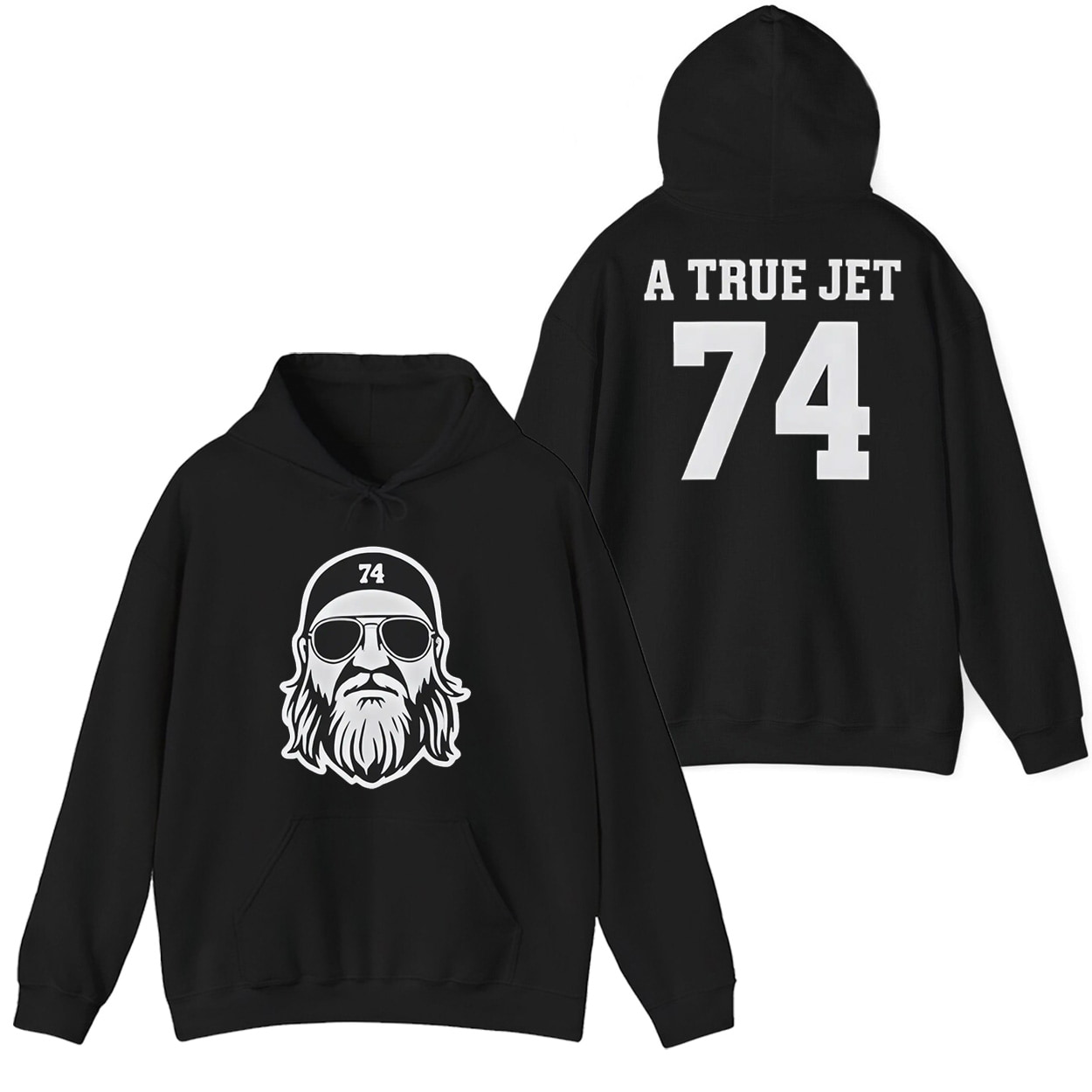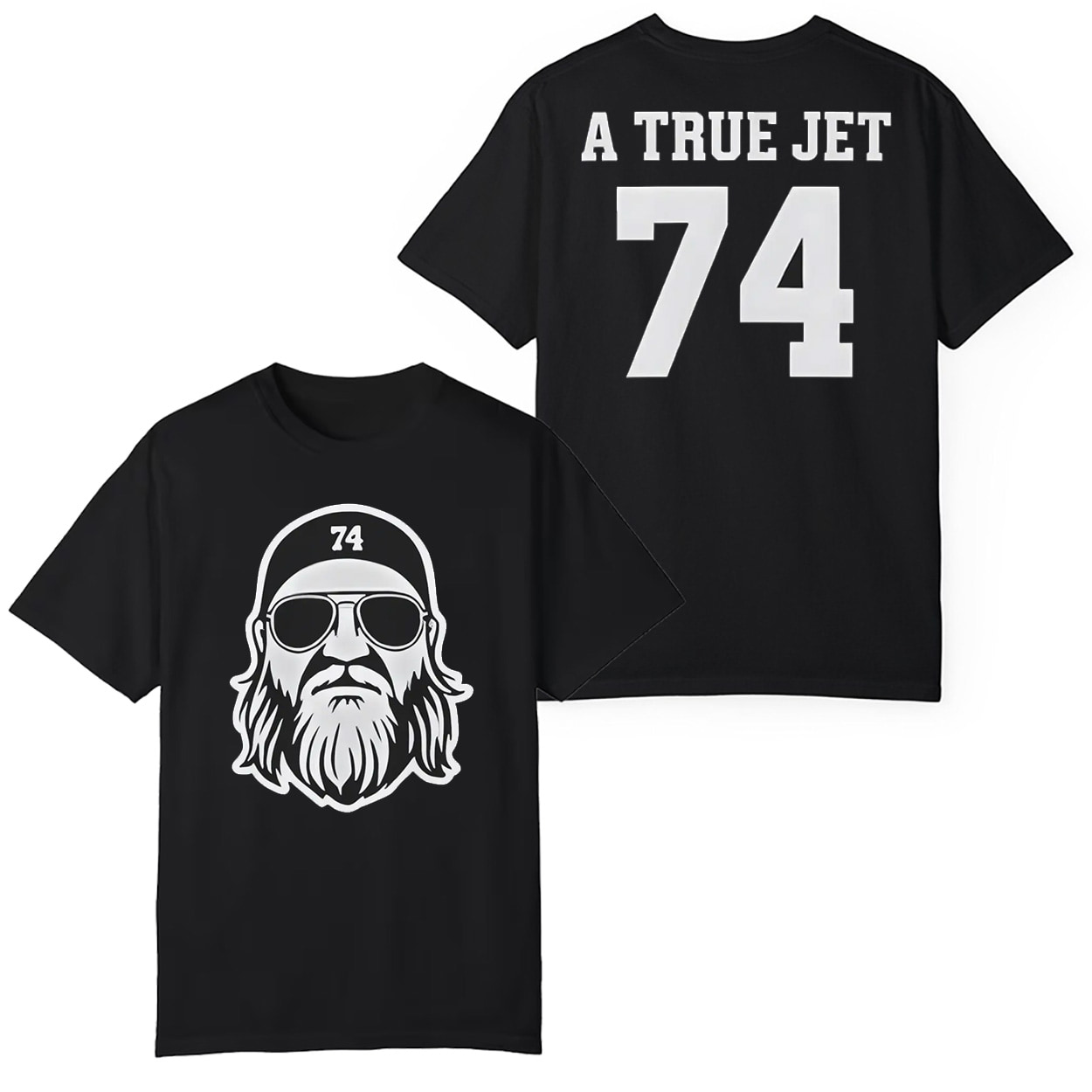 Step into the huddle of greatness with this shirt — a tribute tee that speaks volumes without saying a word. The front features a striking graphic of Mangold himself: bearded, shaded, and capped with the number 74, exuding cool confidence and unmistakable swagger. Flip it around and you’ll find the bold proclamation “A TRUE JET” stamped above the iconic number 74, making it clear where your loyalty lies. Whether you’re tailgating at MetLife or repping your team from afar, this shirt is your badge of honor.