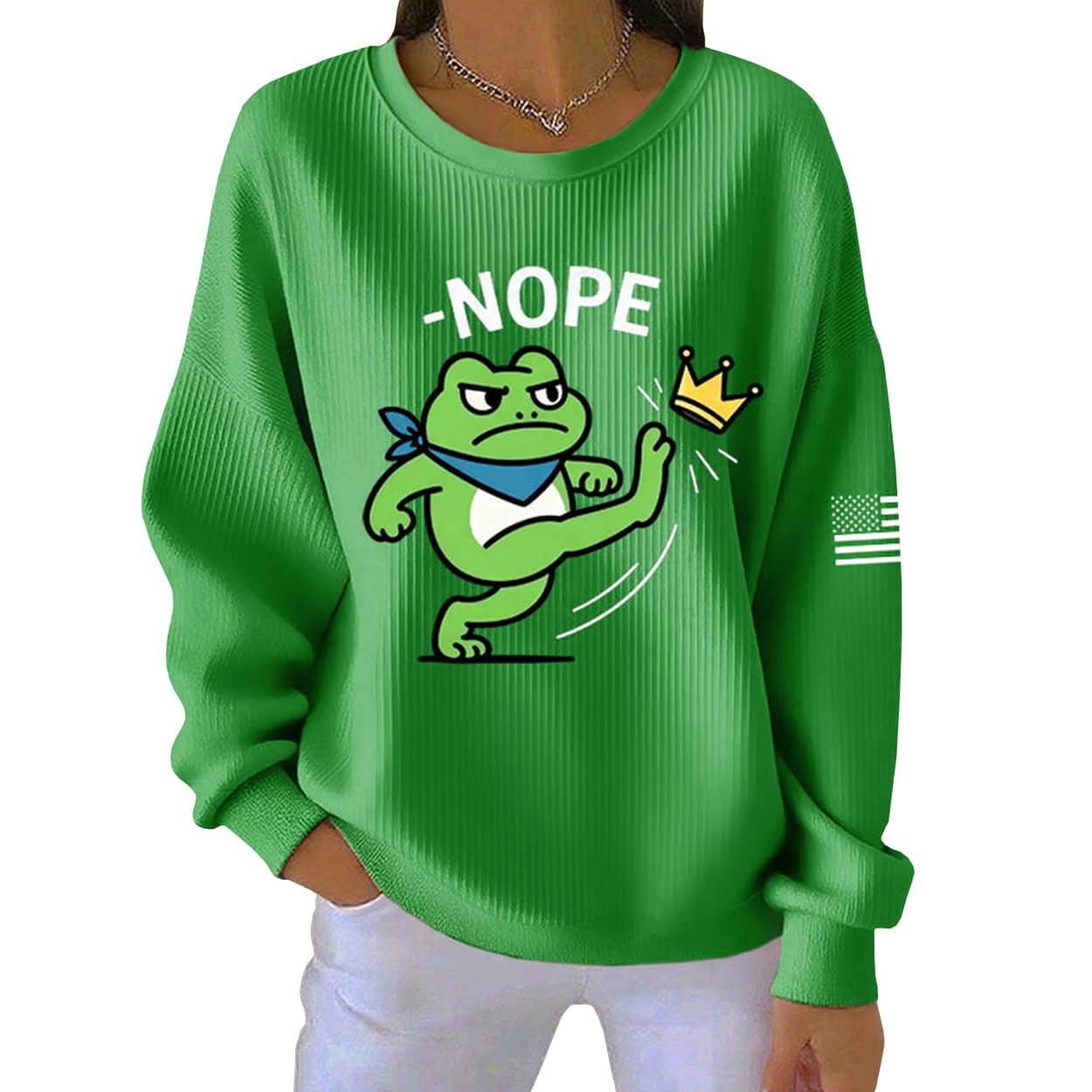 Whether you’re marching, lounging, or making a statement on the street, the Nope Portland Frog No Kings Protest Print Ribbed Sweatshirt lets you wear your values loud and proud. Grab yours and join the movement—because in this country, there are no kings.