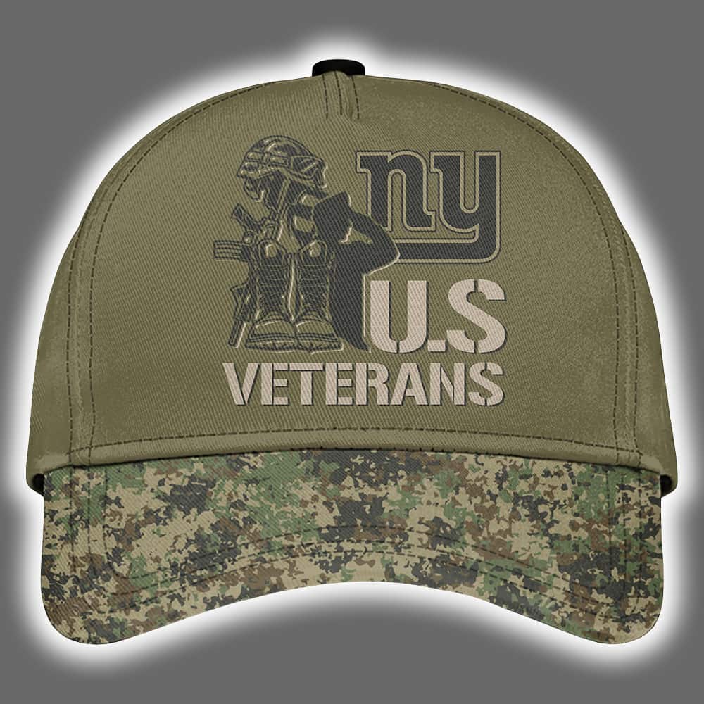 The inspiration for this unique collection comes from the powerful intersection of two dedicated forces: the unwavering loyalty of the Giants fanbase and the selfless courage of our U.S. Veterans. The front of the hoodie and cap proudly displays the “NY” logo and the words “U.S. VETERANS,” with the hoodie also featuring a powerful graphic of a soldier and the words “UNITED STATES VETERAN.” On the back of the hoodie, a striking graphic shows a soldier with a rifle alongside the “GIANTS” and “NY” logos, with the phrase “U.S. VETERANS” boldly printed below. This imagery is a powerful statement, merging the strength of a soldier with the enduring spirit of the New York Giants, creating a symbol of solidarity and respect.