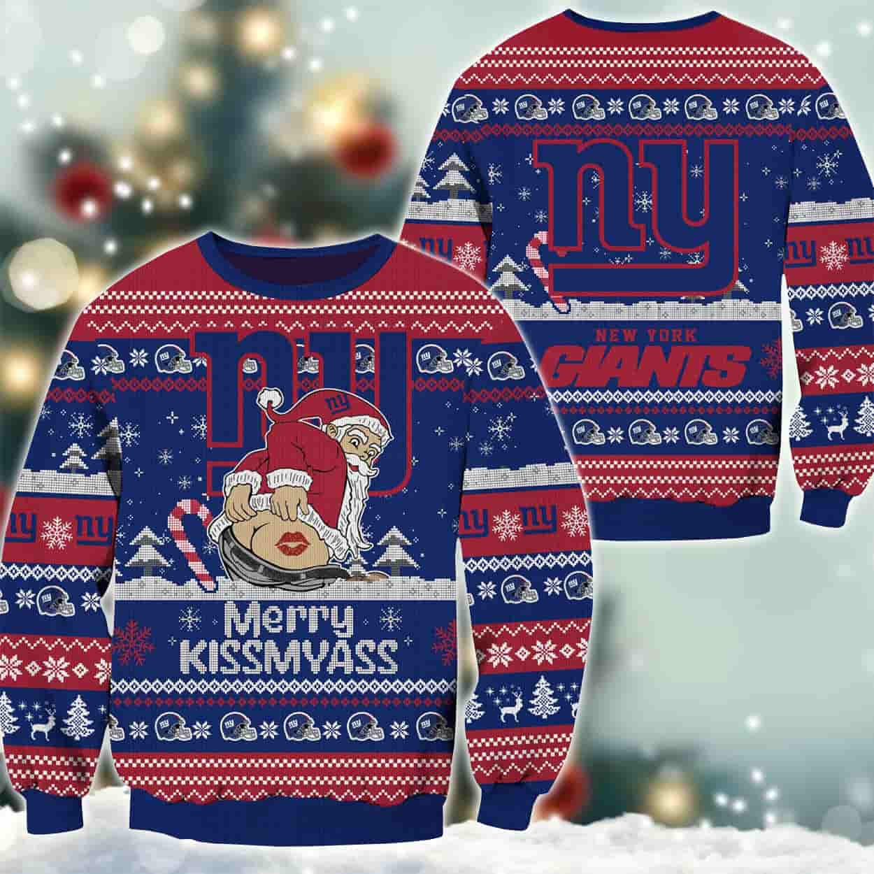 NY Giants Merry Kissmyass Santa Claus Ugly Christmas Sweater – Naughty, Nice, and Unapologetically Bold!