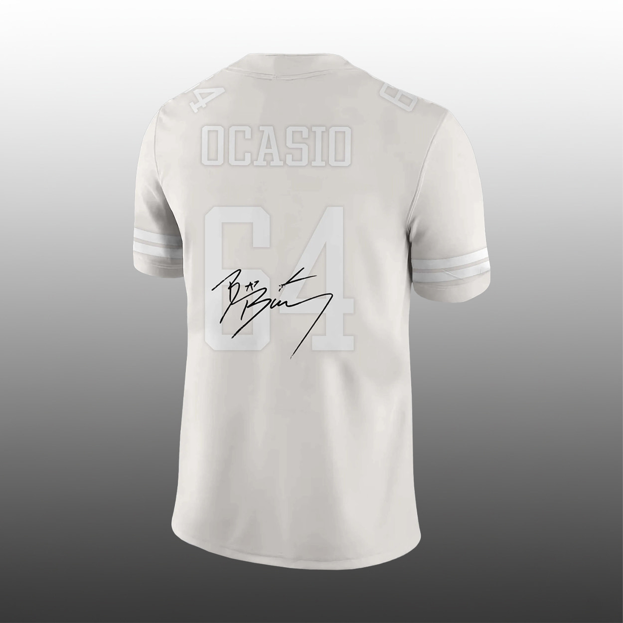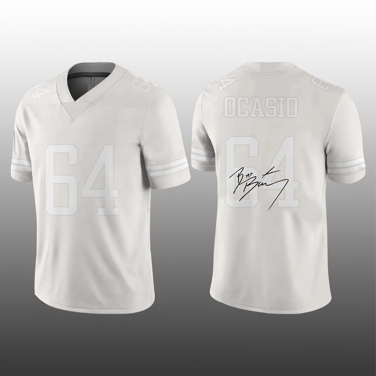 Step into the spotlight with this jersey, the ultimate collector’s item for fans of the global superstar. This monochromatic cream jersey features a clean, minimalist design that mirrors the custom look worn by Benito Antonio Martínez Ocasio during his historic 2026 Super Bowl halftime performance. The front showcases a bold, oversized “64,” while the back proudly displays the “OCASIO” surname in structured block lettering.