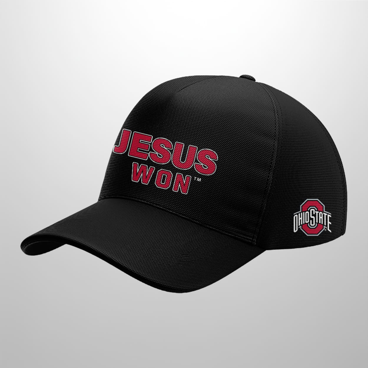 This sweatshirt is more than just game-day gear—it’s a wearable declaration of triumph. On the front, the iconic Ohio State University logo sits proudly on the upper left chest, while the bold proclamation “JESUS WON™” blazes across the center in striking red and white. Flip it around, and you’ll find a large Ohio State logo dominating the back, crowned by a subtle red cross near the neckline. It’s a design that turns heads and sparks conversations, whether you’re tailgating or walking campus.