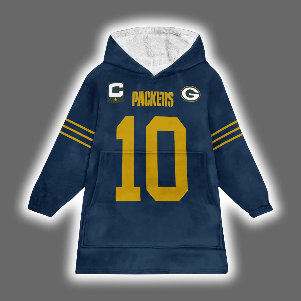 Lead the Pack in the Packers Captain Jordan Love 10 Football Blanket Hoodie!