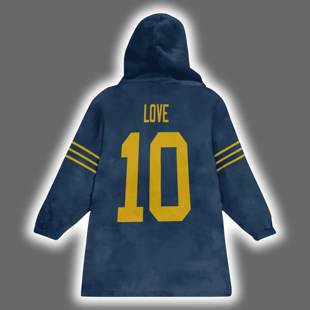 Step into legendary comfort with the Packers Captain Jordan Love 10 Football Blanket Hoodie—a fan-favorite fusion of jersey swagger and oversized coziness. Drenched in deep navy blue with striking yellow accents, this hoodie features the number “10” front and back in bold white, with “LOVE” printed proudly across the shoulders. The front showcases “PACKERS” in golden yellow, the iconic “G” logo, and a captain’s patch that signals leadership status.