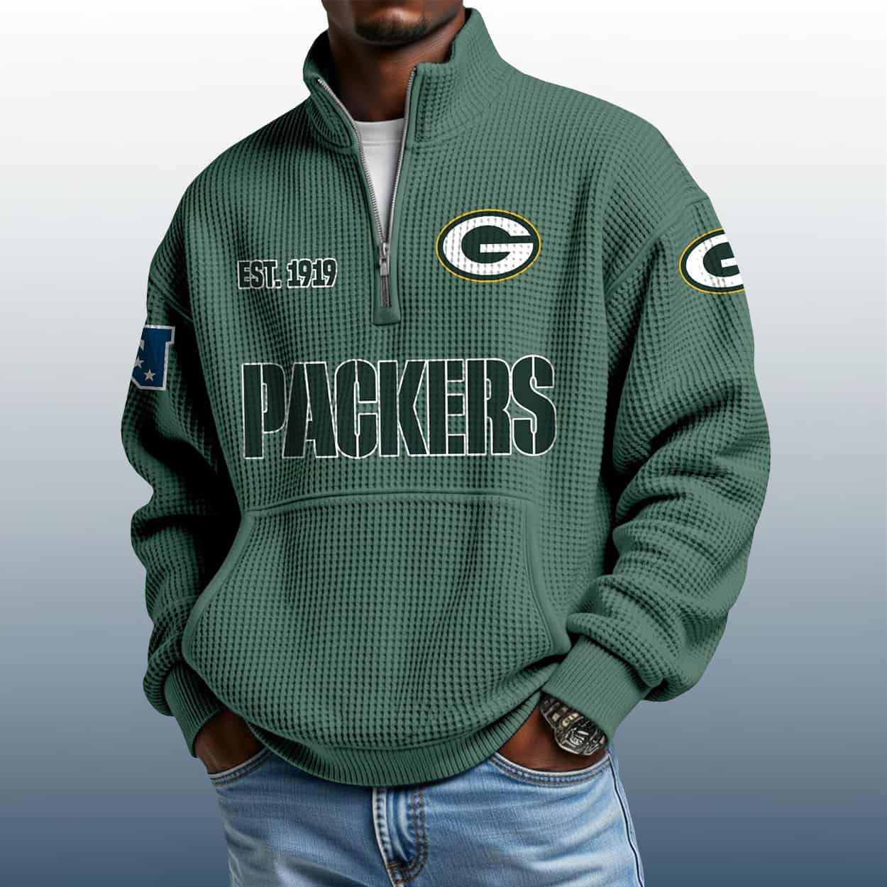 Go Bold in Green: The Packers Est 1919 Stand Collar Half Zip Waffle Sweatshirt That Scores Style Points
