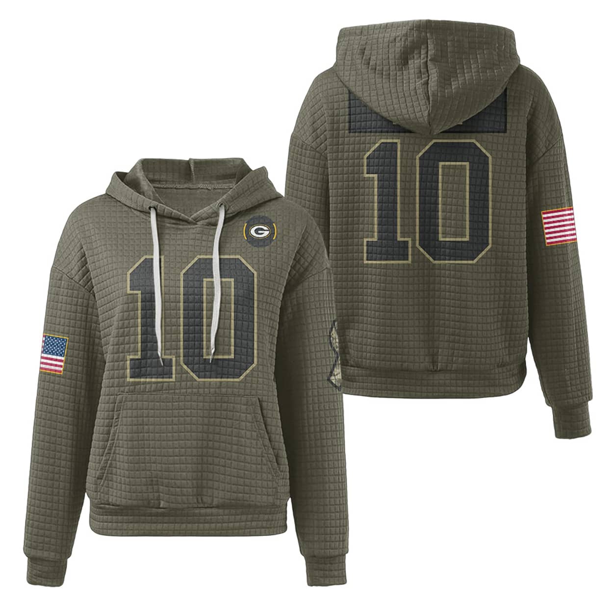 Celebrate your Packers pride and honor service with the Packers Veterans Day Jordan Love 10 Waffle Hoodie — a bold blend of football fandom and patriotic flair designed for fans who lead with heart.