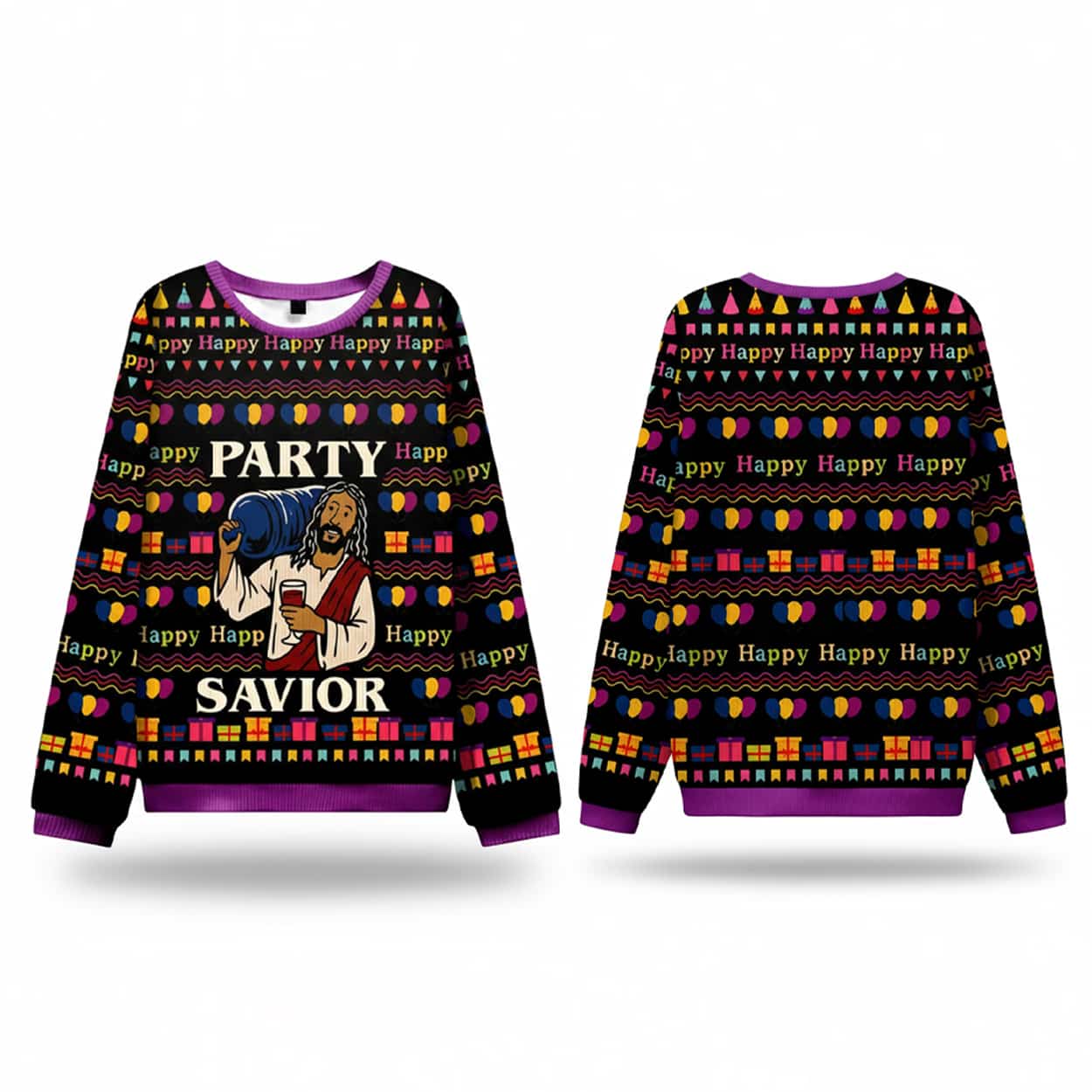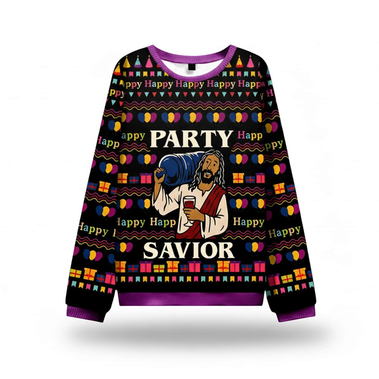 Be the first to review “Party Happy Savior Ugly Christmas Sweater” Cancel reply