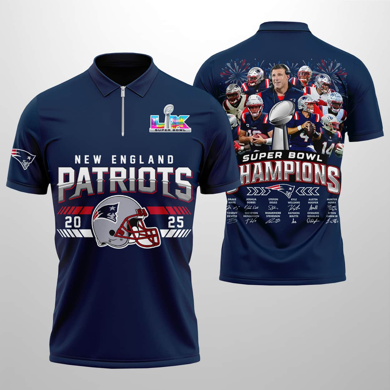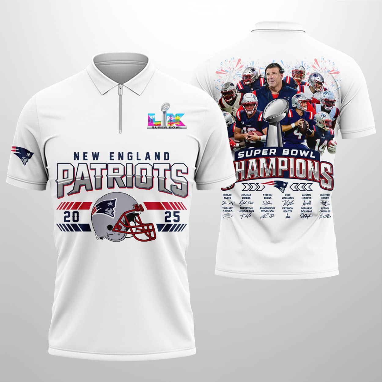 Patriots 2025 Bowl LX Champions Zip Polo Shirt – Wear the Win