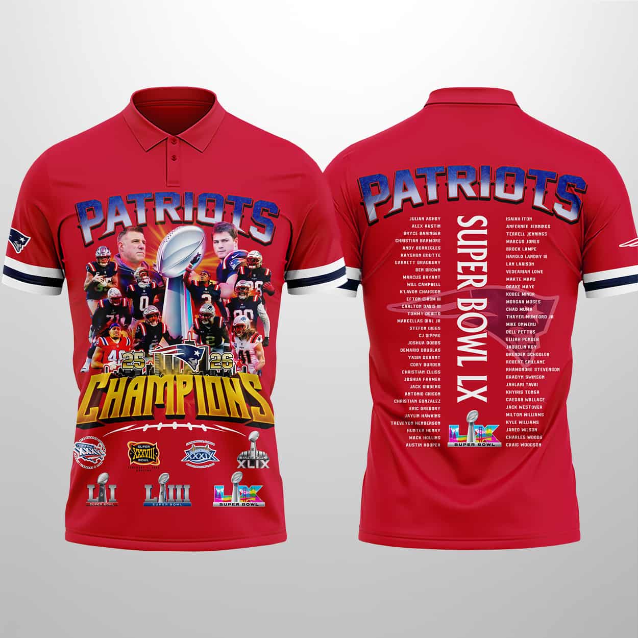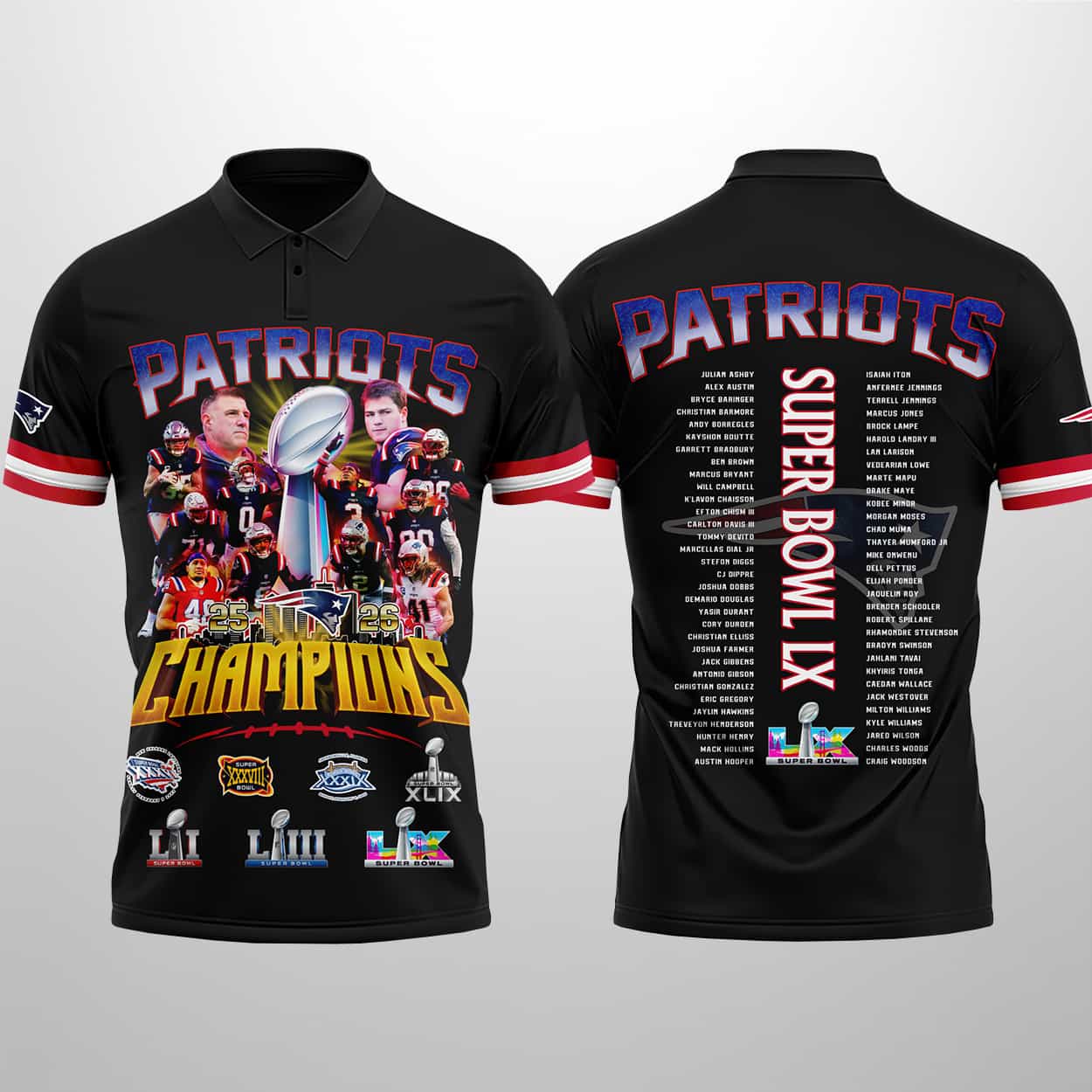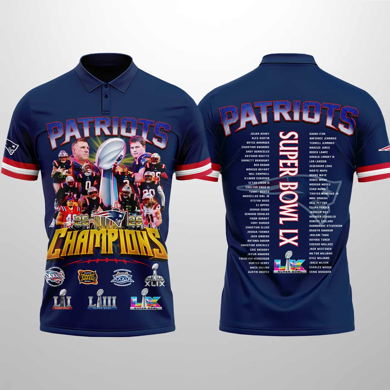 Patriots 25-26 SB LX Champions Polo Shirto – Wear the Glory, Live the Legacy