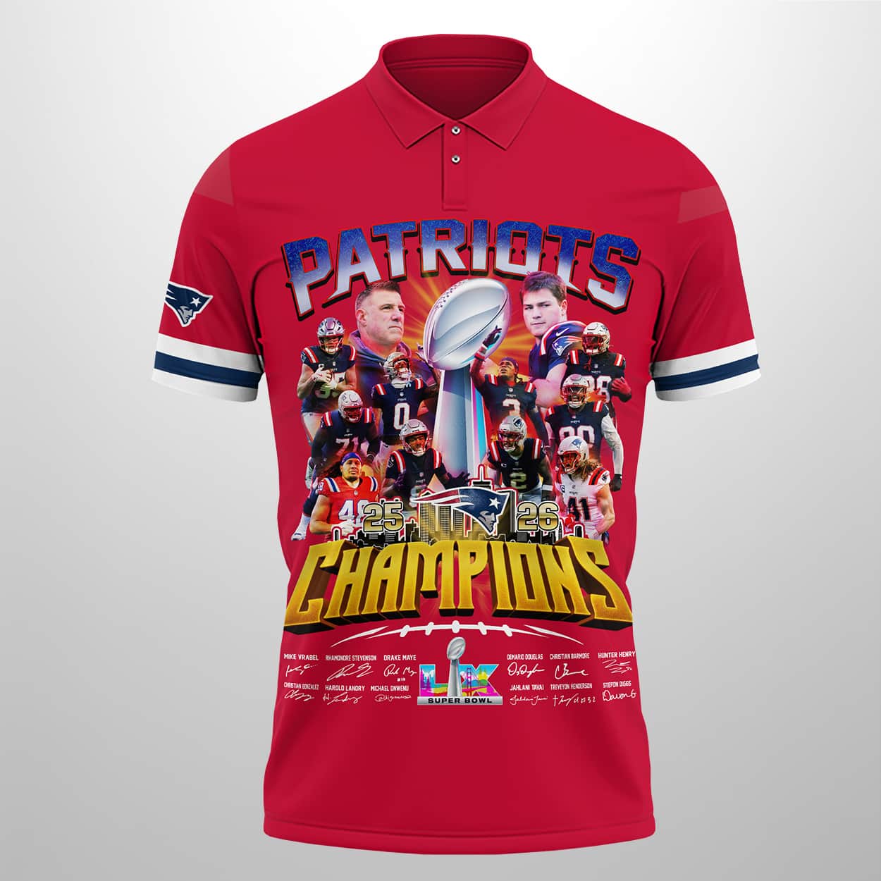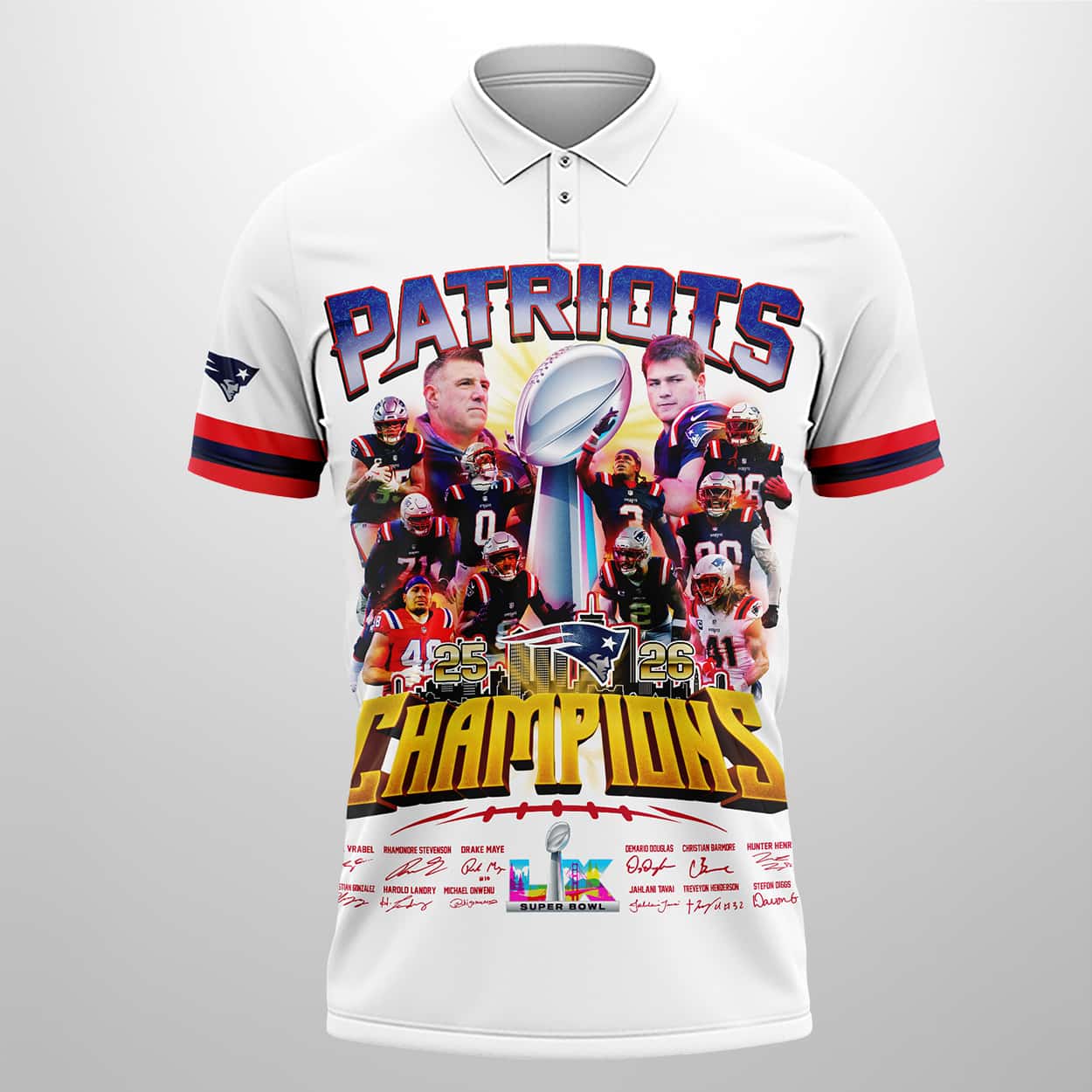 Patriots 25-26 Super Bowl LX Champions Polo Shirt – Bold Graphics, True Fan Pride