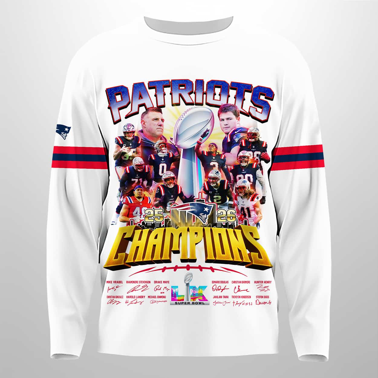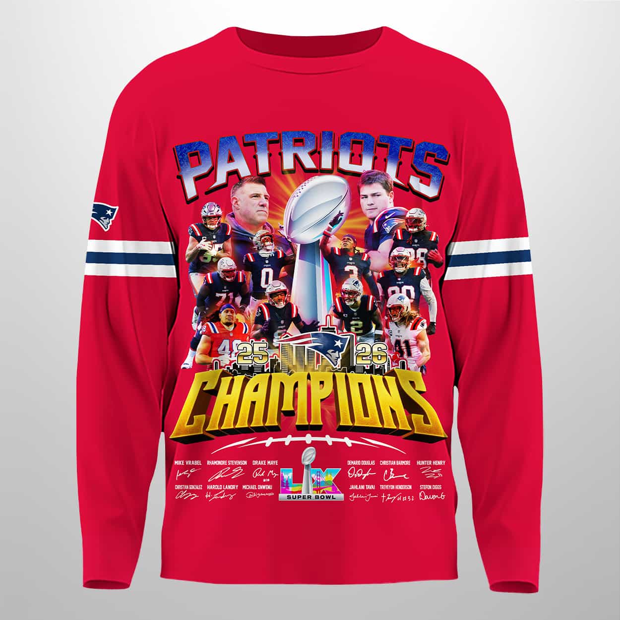 Show off your championship pride with the Patriots 25-26 Super Bowl LX Champions Sweatshirt—an electrifying design that captures the thrill of victory, bold graphics, and the spirit of true fans.