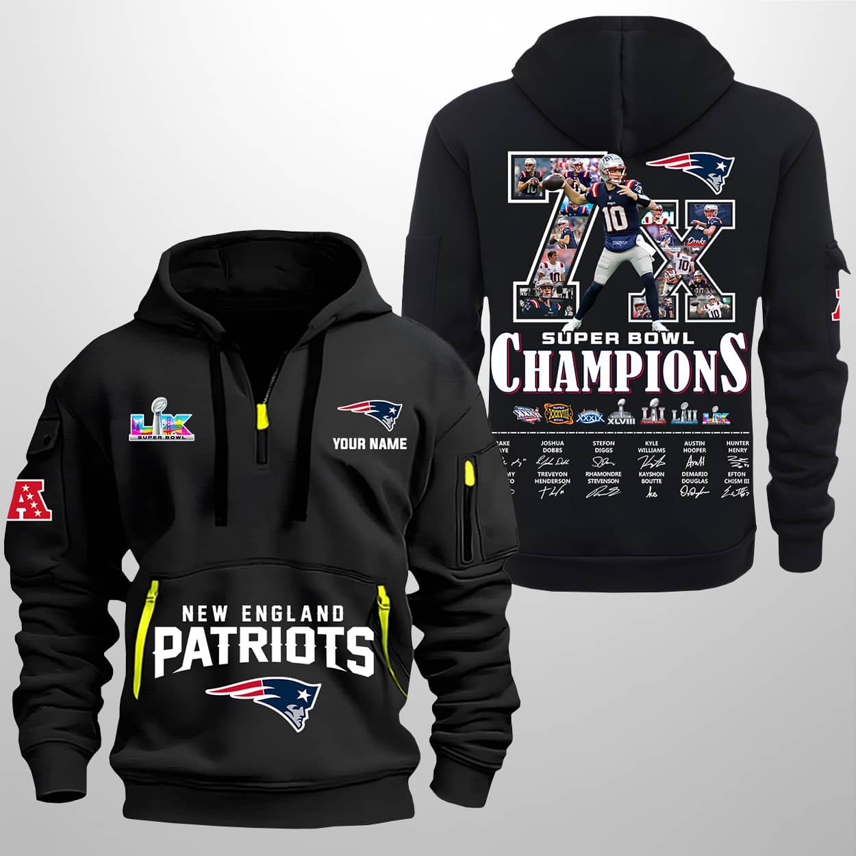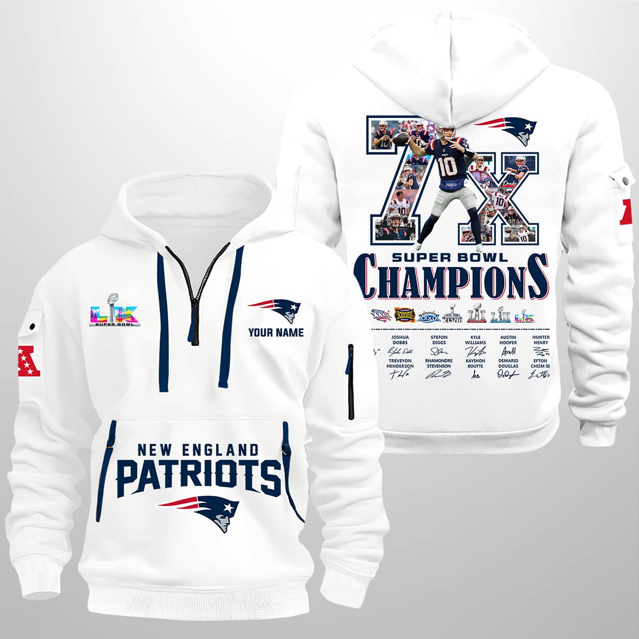 Patriots 7X SBowl Champions 2026 Quarter Zip Hoodie