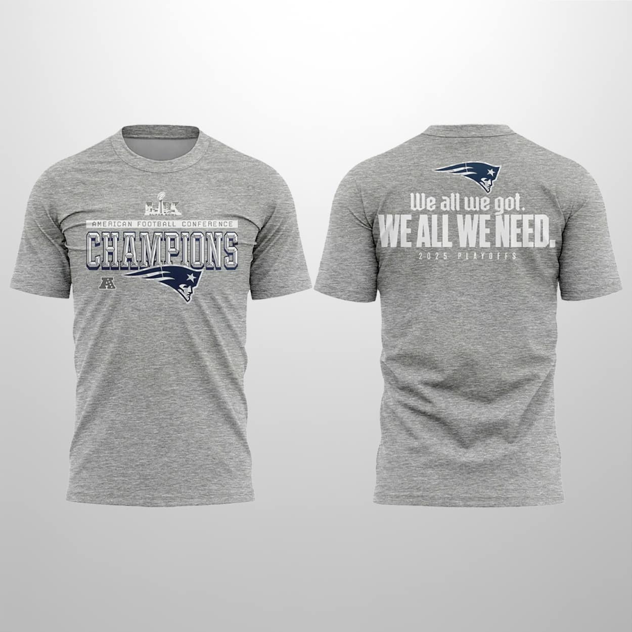 Don’t let the confetti settle without securing your piece of New England history. Grab your Patriots AFC Champions 2026 We All We Need Shirt today and help carry that championship energy all the way to the SB!