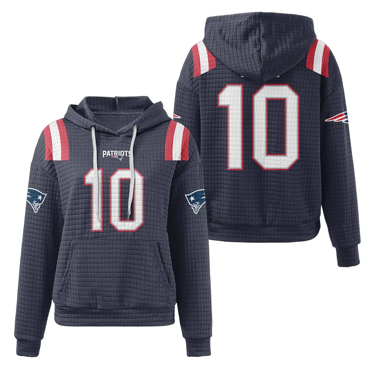 Step into Patriots pride with the Patriots Drake Maye 10 Waffle Hoodie — a textured, team-first tribute to New England’s next big thing. Bold, blue, and built for fans who think like quarterbacks.