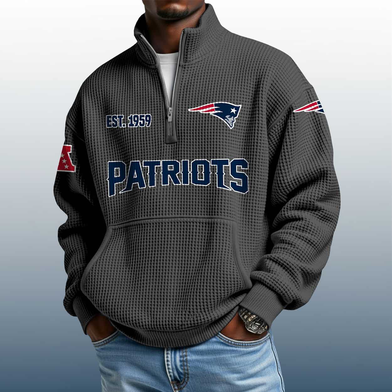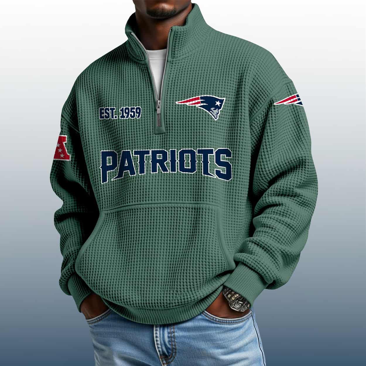 Patriots Est 1959 Stand Collar Half Zip Waffle Sweatshirt