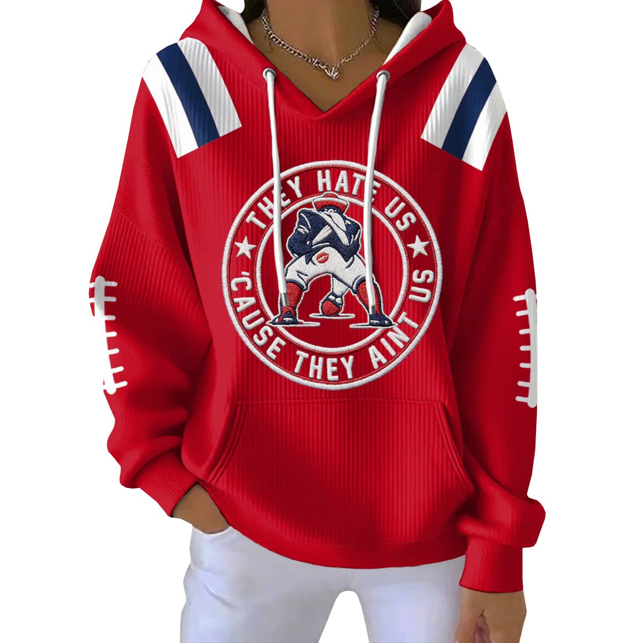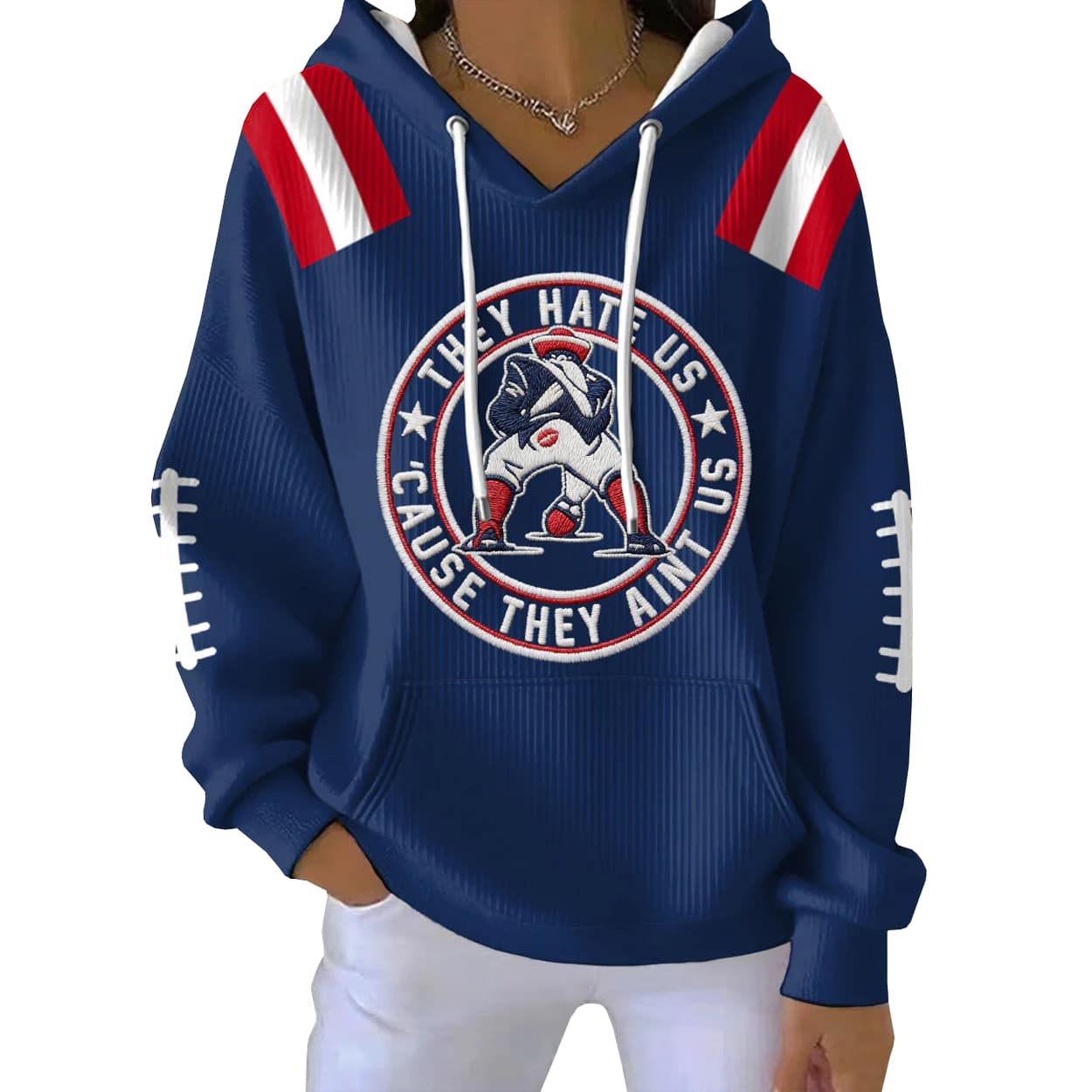 Unleash your inner underdog with the Patriots They Hate Us Cause They Ain’t Us Printed Pit Striped Hoodie—where bold stripes meet bolder attitude.