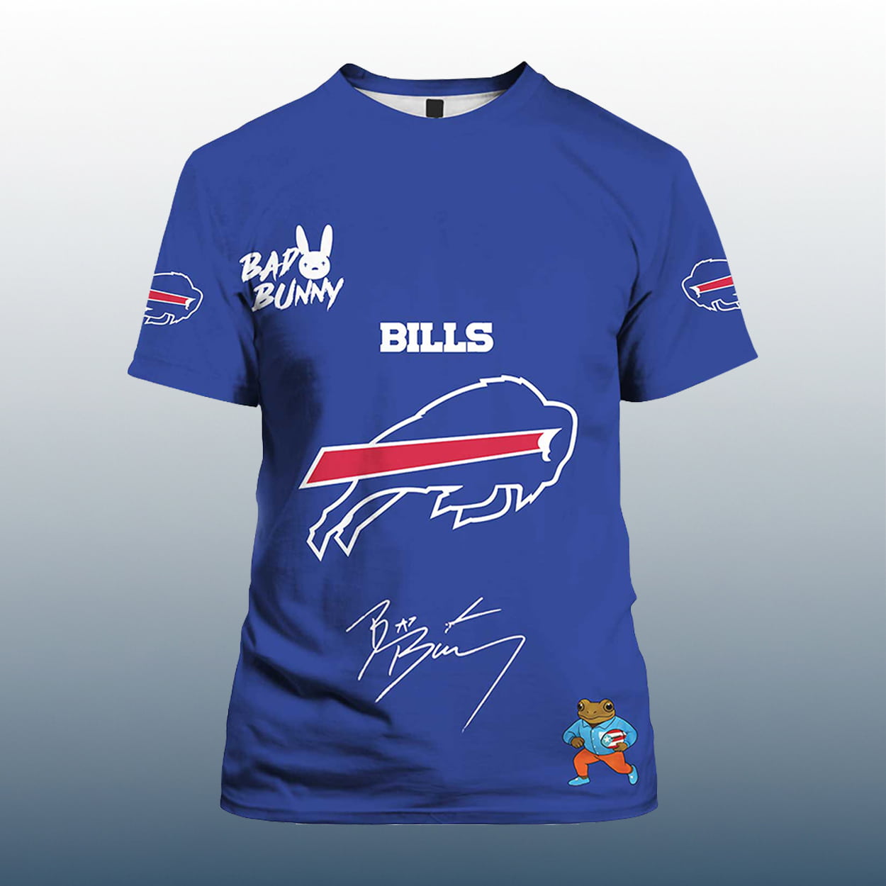 This shirt is for fans who live at the intersection of hype and heart. It’s a celebration of Bills grit and Bad Bunny’s global swagger, wrapped in playful graphics and unapologetic attitude. Whether you’re vibing at the game or dancing through halftime, this design says you’re here for the culture, the clash, and the confetti.