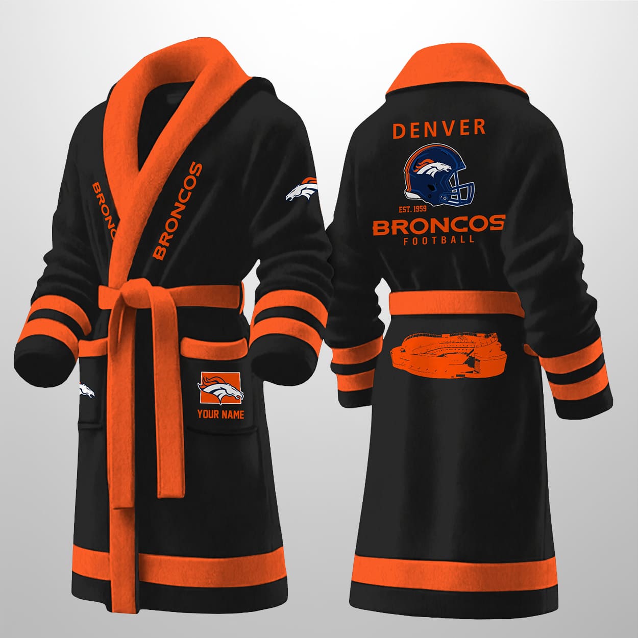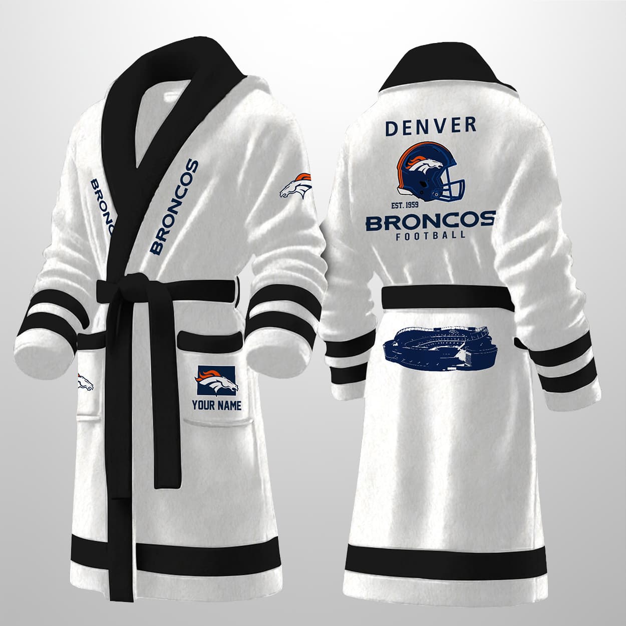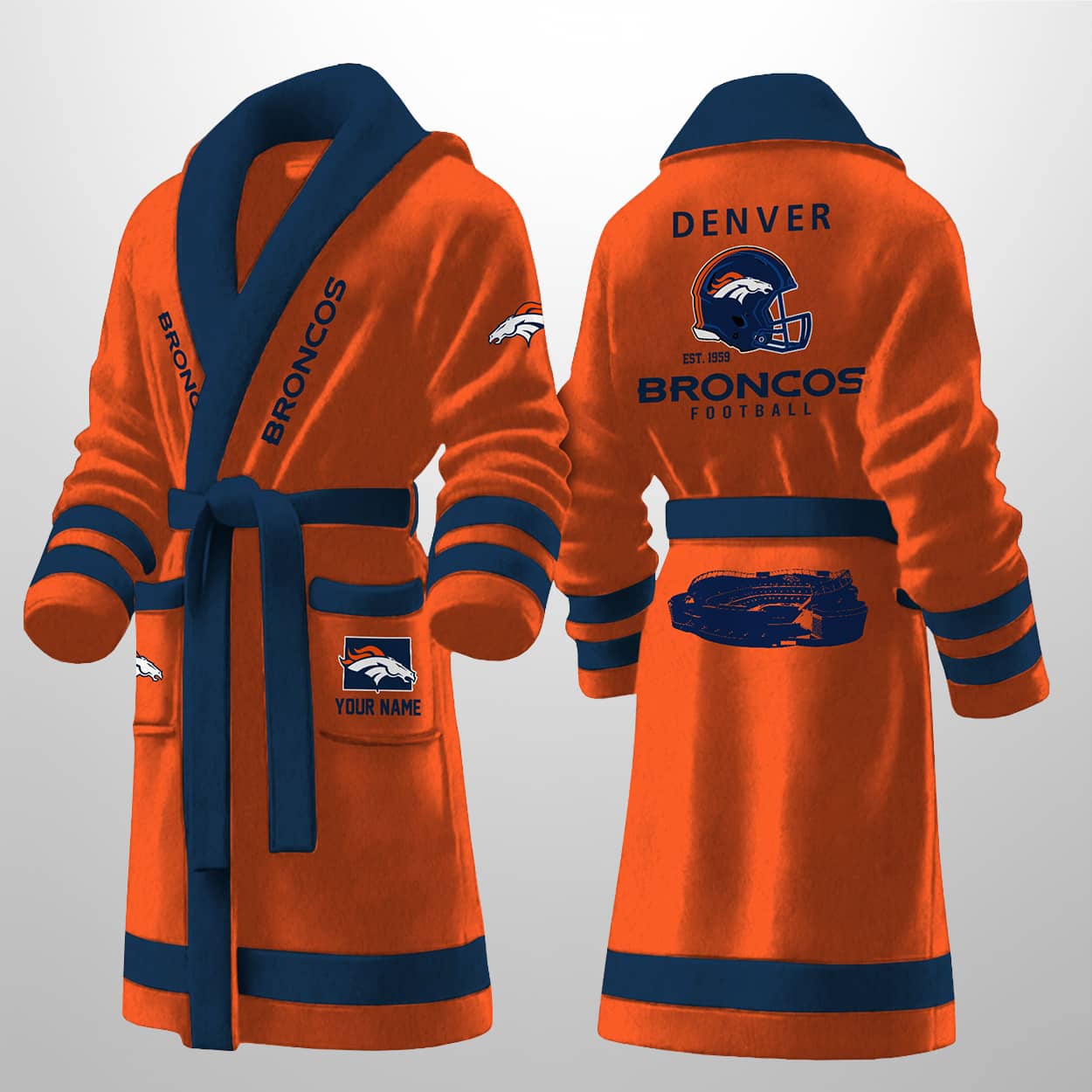 Lounge Like a Legend in the Personalized Broncos Est 1959 Bathrobe!