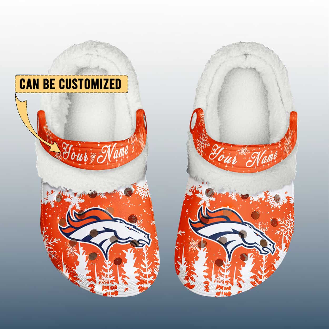 Show off your Broncos pride with this Personalized Broncos Winter Christmas Fleece Crocs—festive, bold, and perfect for fans who love flair and football.