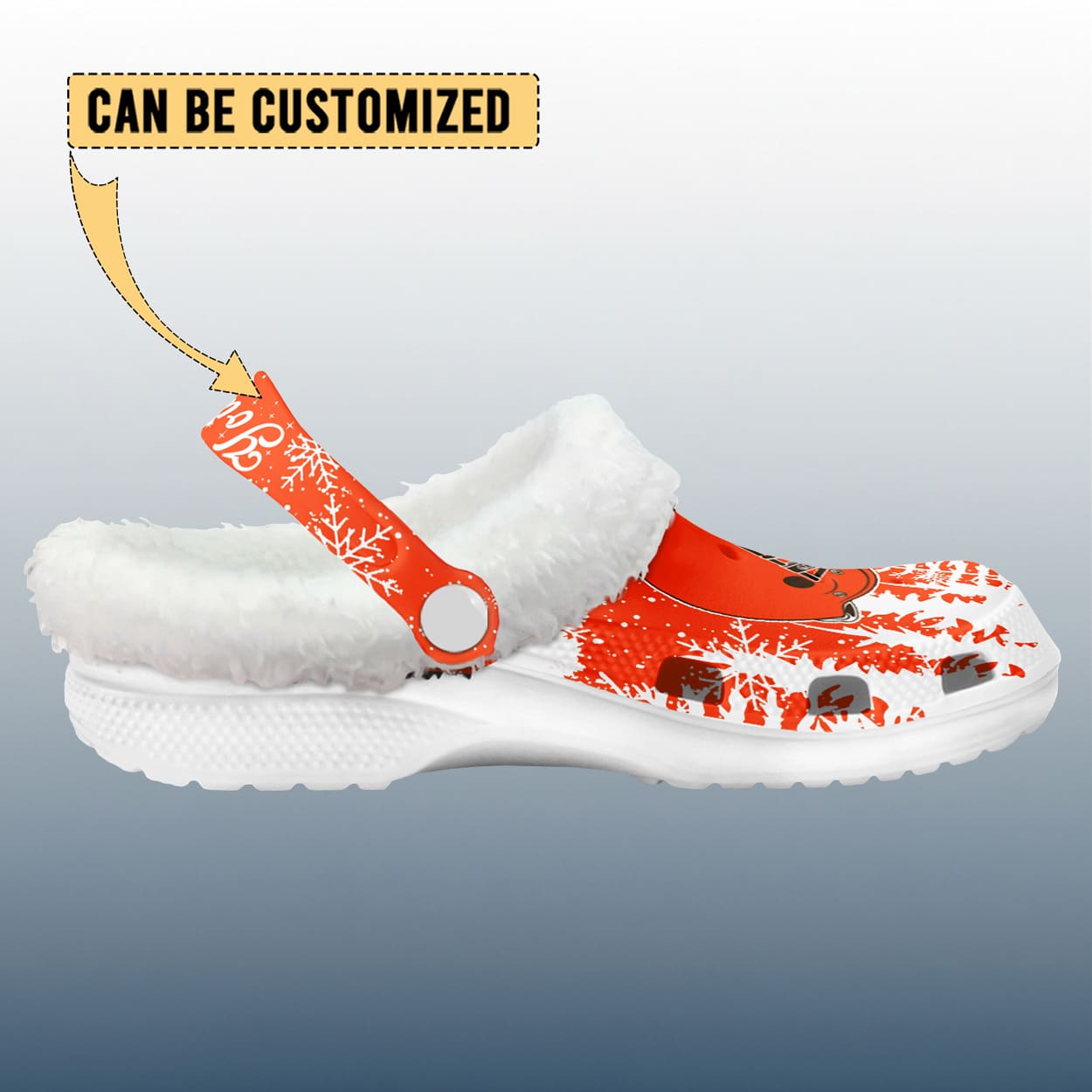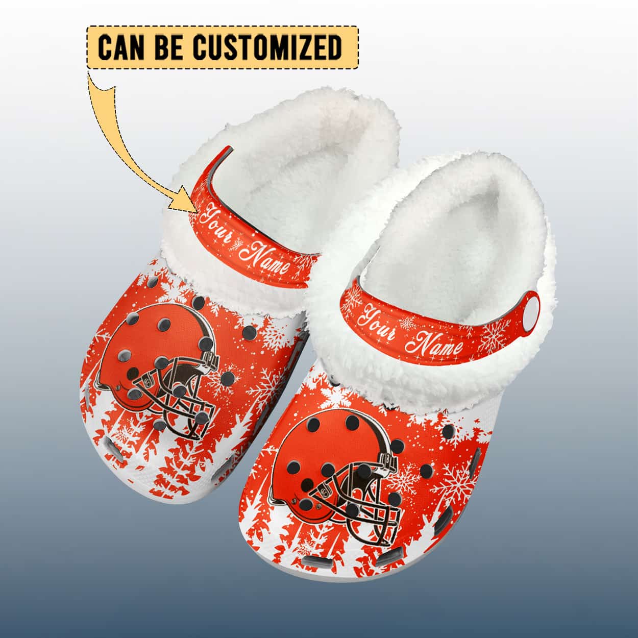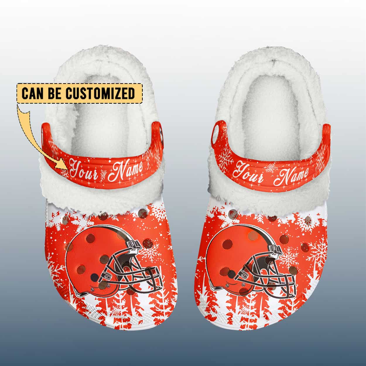 Celebrate the holidays with gridiron flair in Personalized Browns Winter Christmas Fleece Crocs—festive, cozy, and custom-made for die-hard football fans.