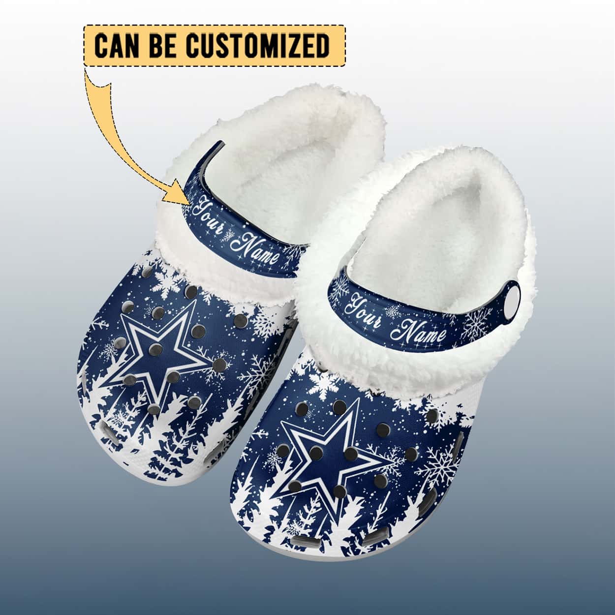 Ready to kick off the holidays in true Cowboys fashion? Customize your pair of Personalized Cowboys Winter Christmas Fleece Crocs and show the world that your team pride never takes a snow day. Slip them on and let your name shine with every step.