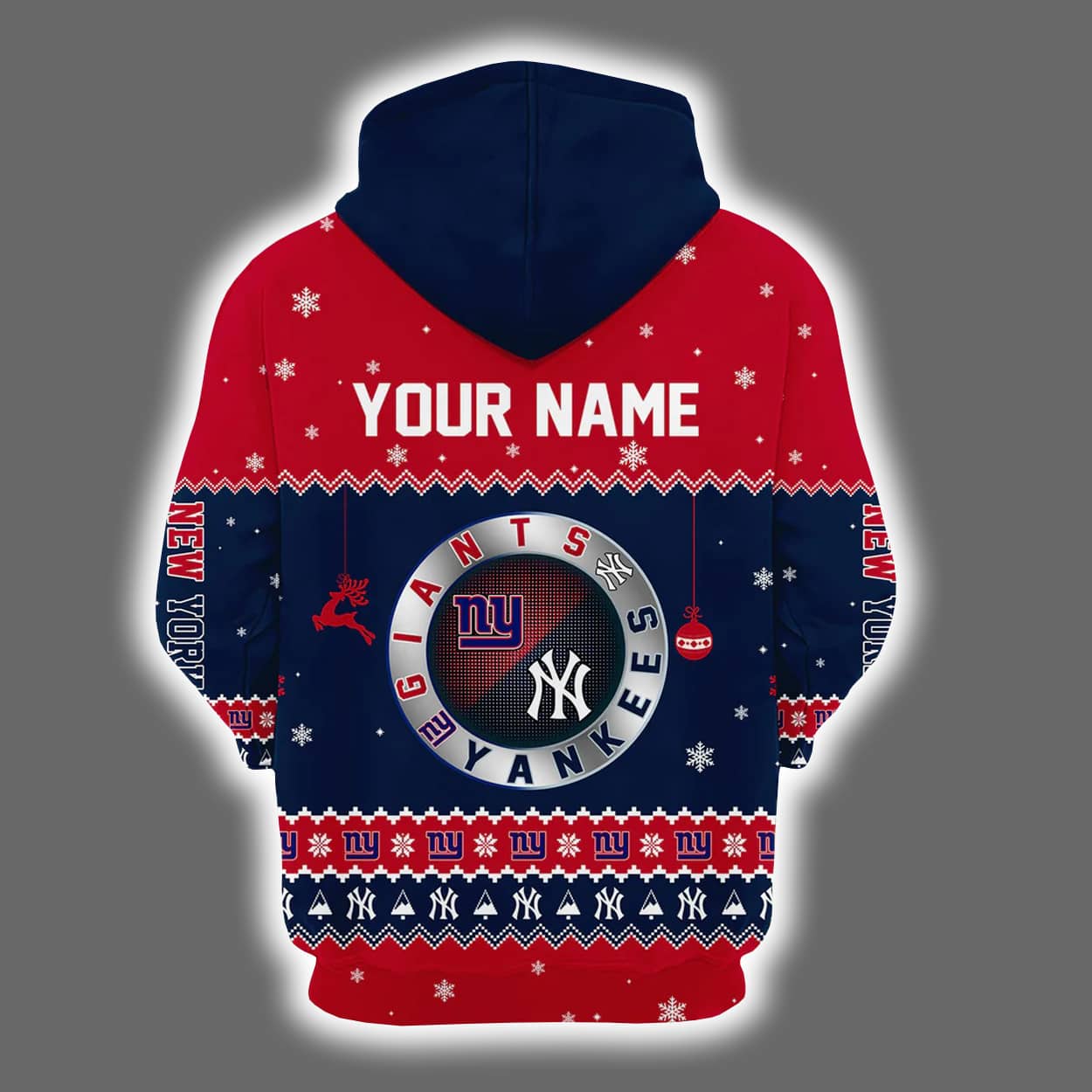 Big Apple Blitz: The Personalized NY Giants x Yankees Christmas Hoodie