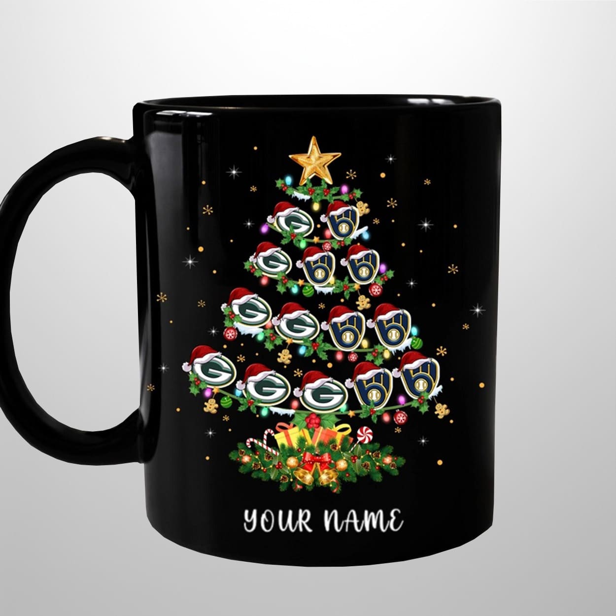 Celebrate the season with the Personalized Packers x Brewers Christmas Tree Mug—a festive fusion of sports pride and holiday cheer, perfect for fans who love a custom touch.