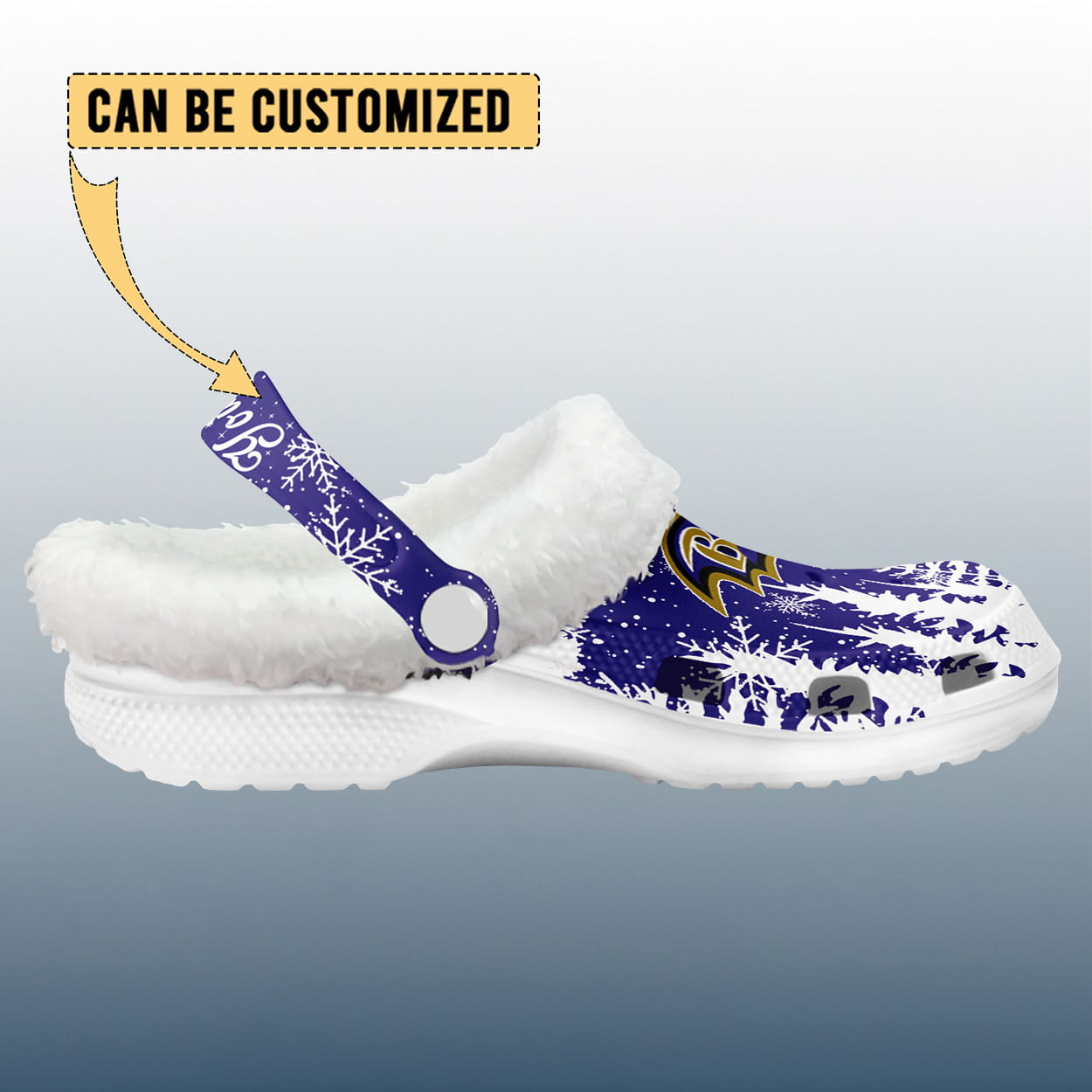 Ready to soar into winter with style? Customize your pair of Personalized Ravens Winter Christmas Fleece Crocs and show the world that your fandom never chills. Slip them on, stand tall, and let your name fly with every step.