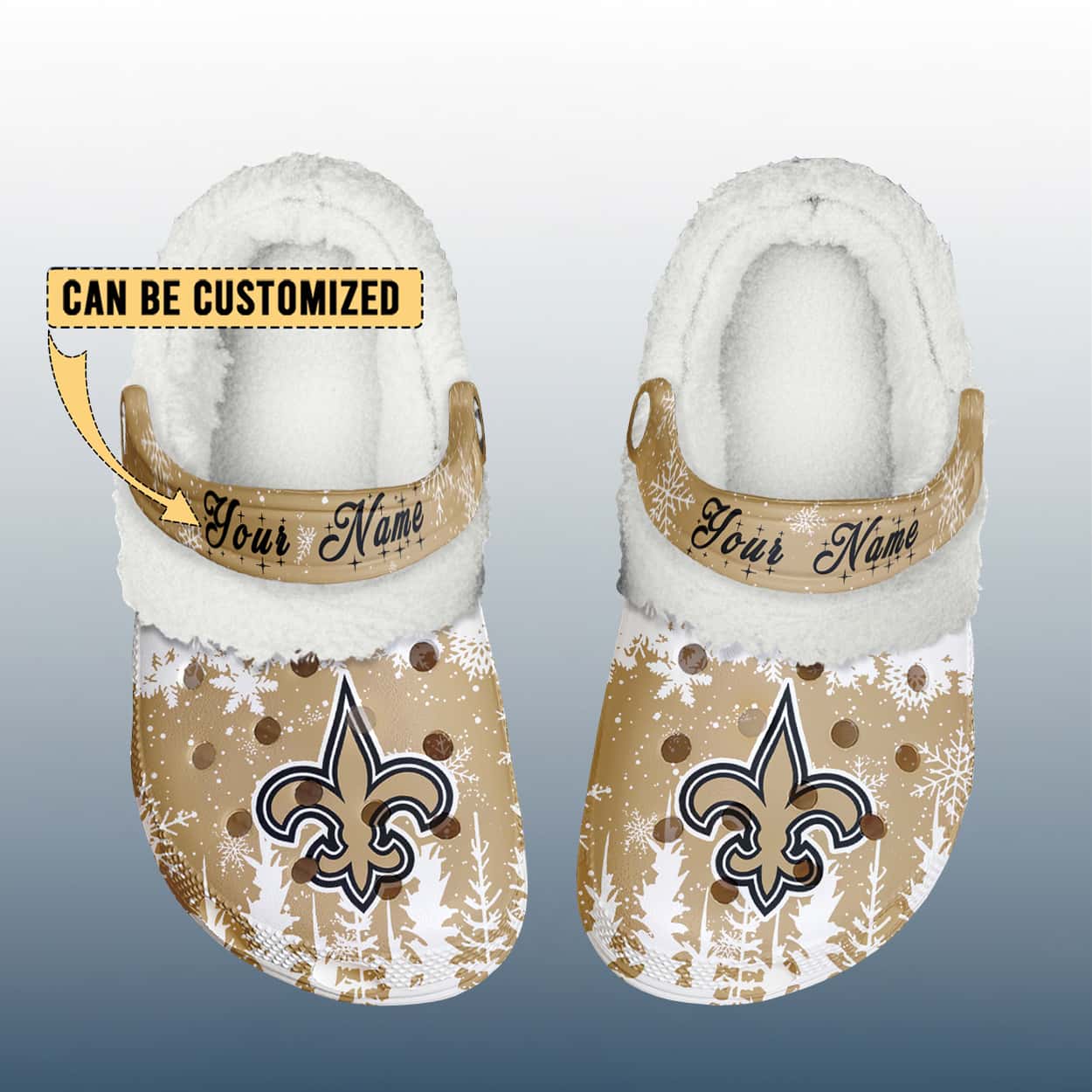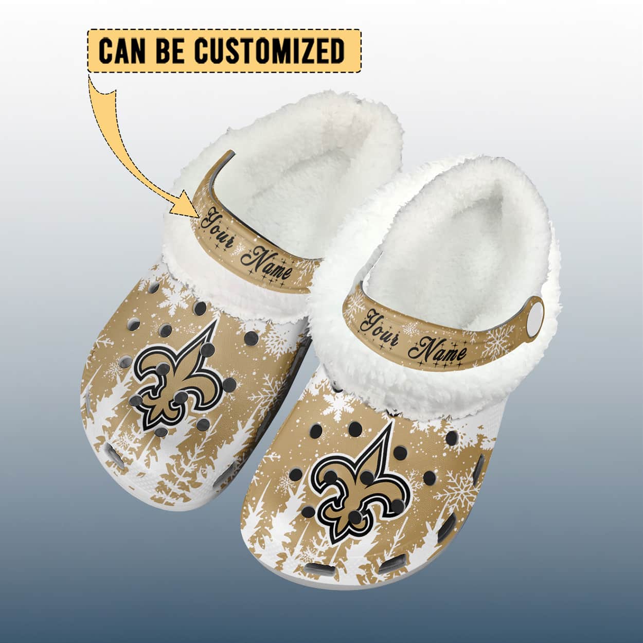 Ready to march into the holidays with style? Grab your Personalized Saints Winter Christmas Fleece Crocs and let your steps echo with pride. Your name, your team, your season to shine.