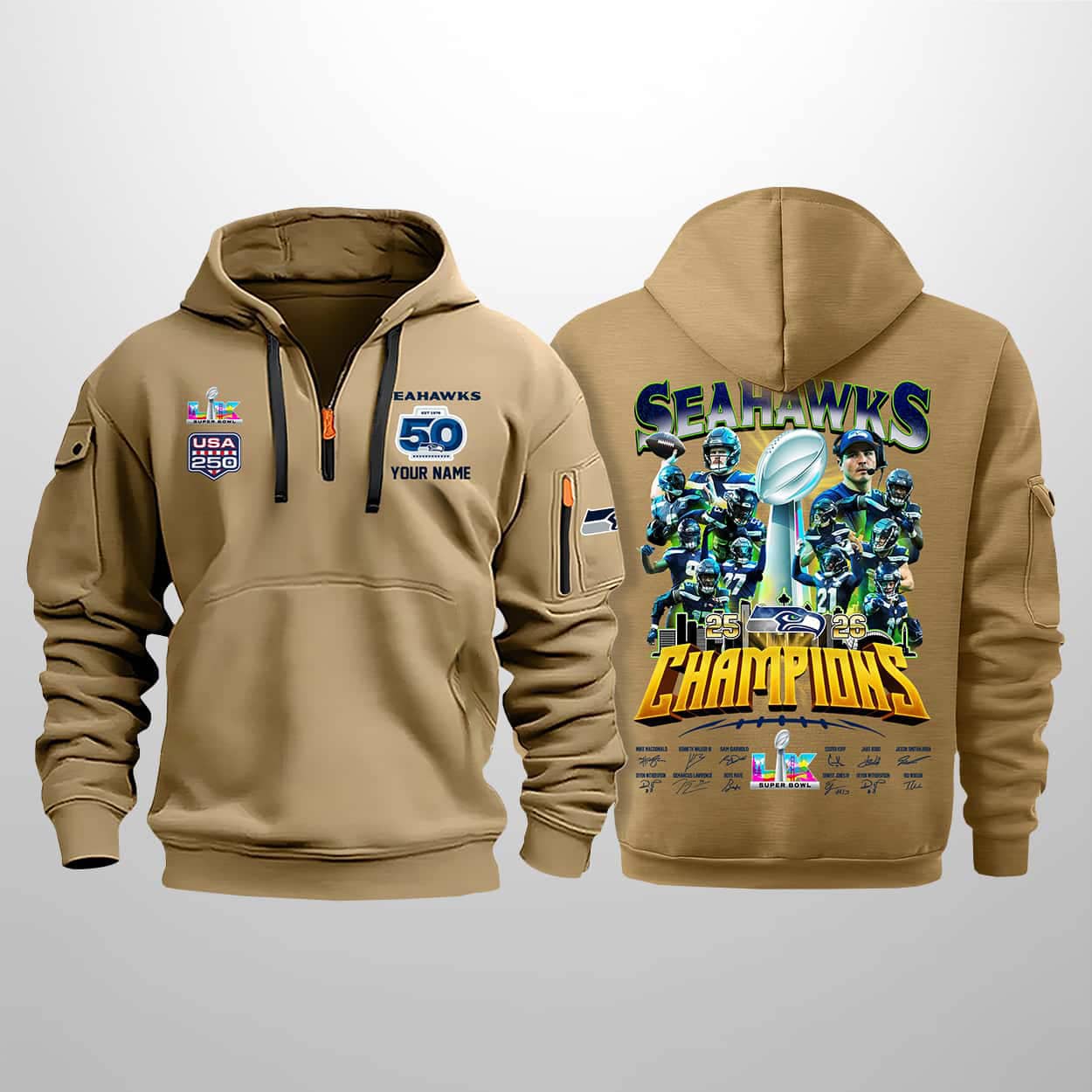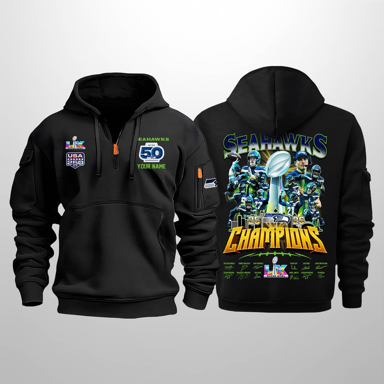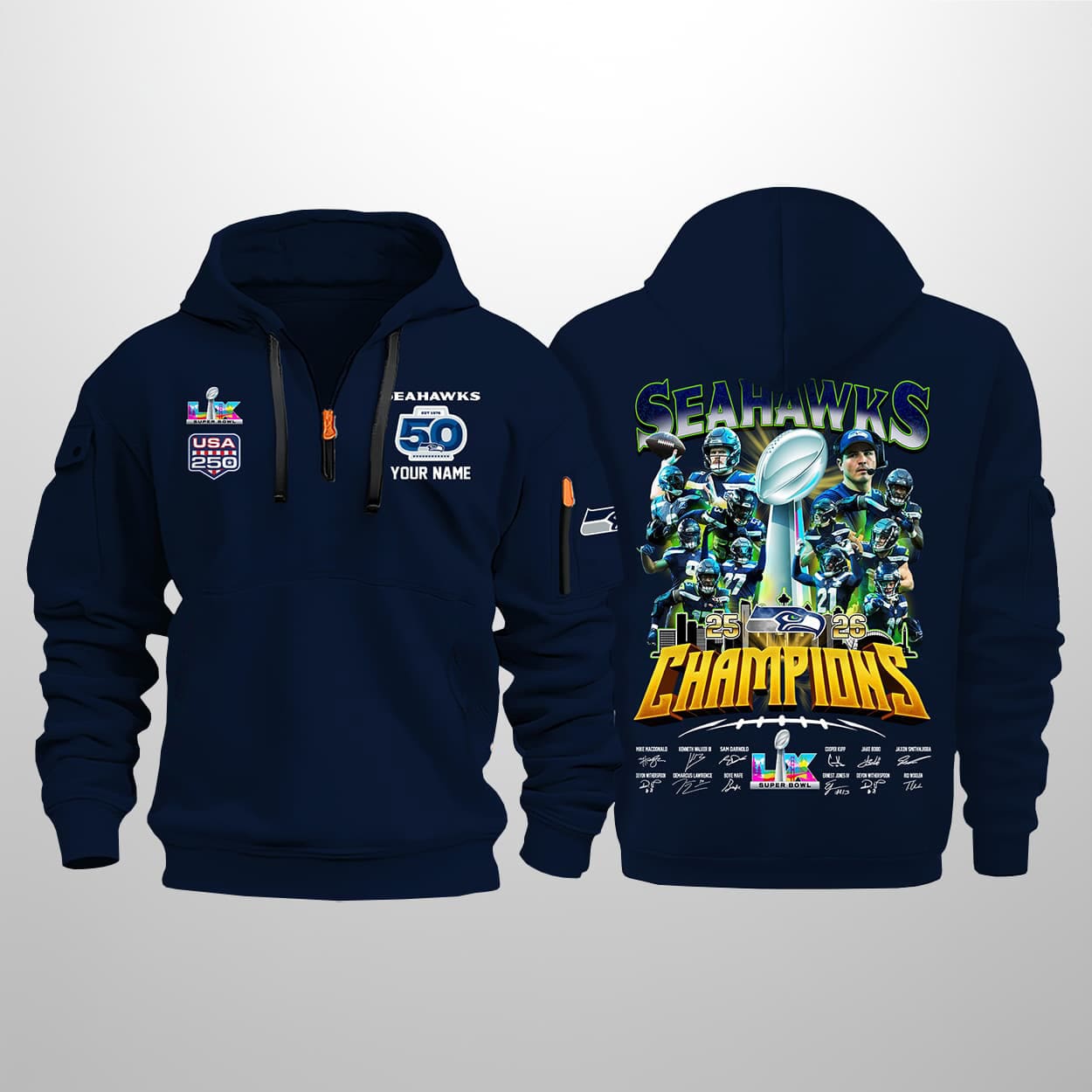 Personalized Seahawks 25 26 Super Bowl LX Champions Hoodie Half Zipper