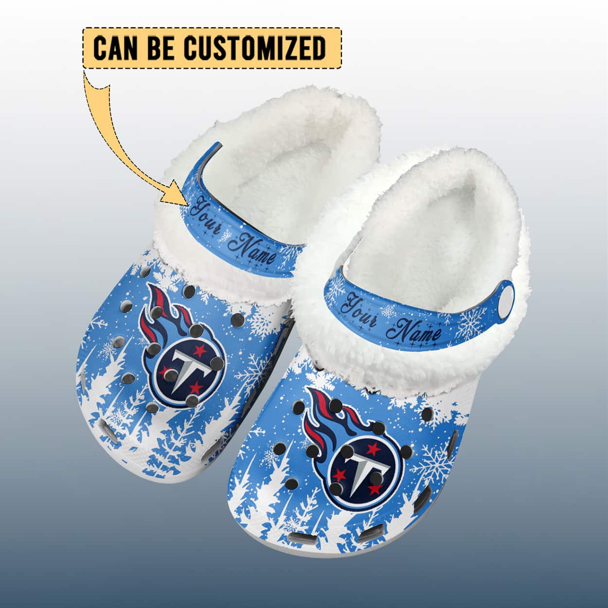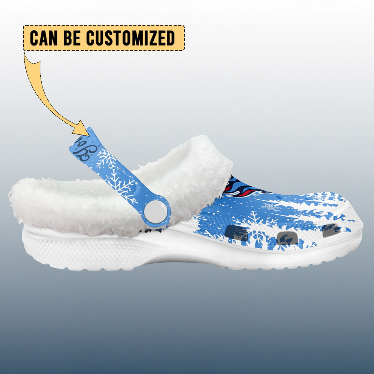 Ready to charge into the holidays with Titan pride? Customize your pair of Personalized Titans Winter Christmas Fleece Crocs and show the world that your team spirit never chills. Slip them on, stand tall, and let your name roar with every step.