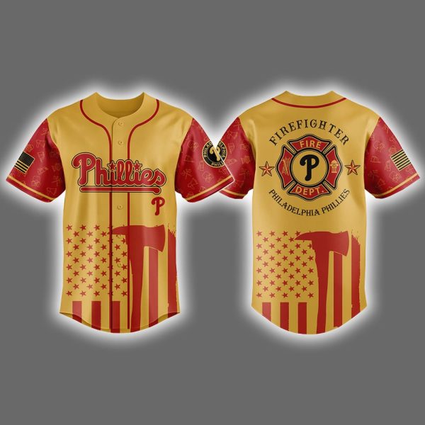 Celebrate the heroes of Philadelphia with the Phillies Firefighter Appreciation Night Jersey 2025! This vibrant mustard-yellow jersey blends team pride with firefighter tribute, featuring bold designs and patriotic elements—perfect for fans and collectors alike.
