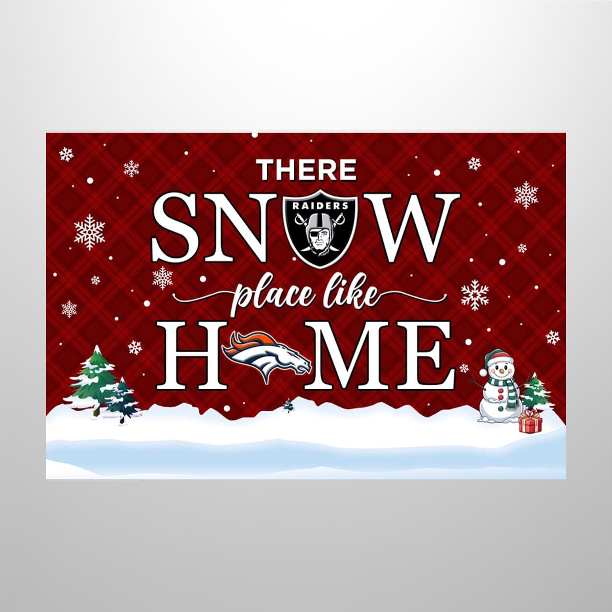 Celebrate the holidays with team spirit using the Raiders x Broncos There Snow Place Like Home Doormat—a festive welcome for football fans who love a snowy twist.