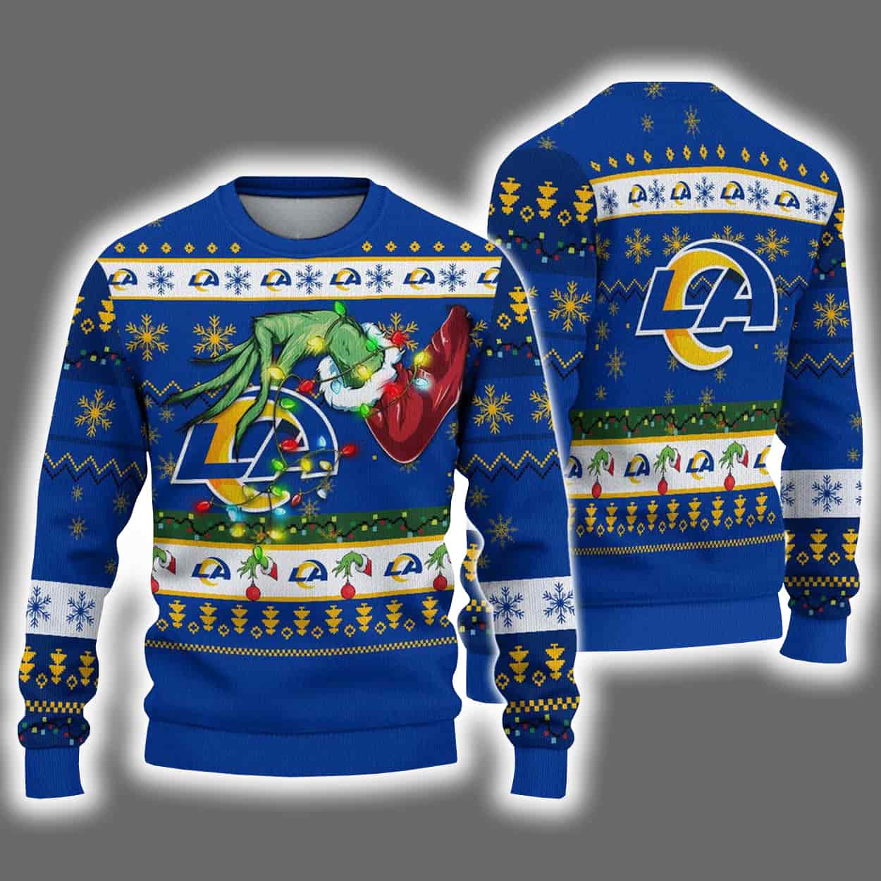 Steal the Spotlight with the Rams Grnch Hand Ugly Christmas Sweater!