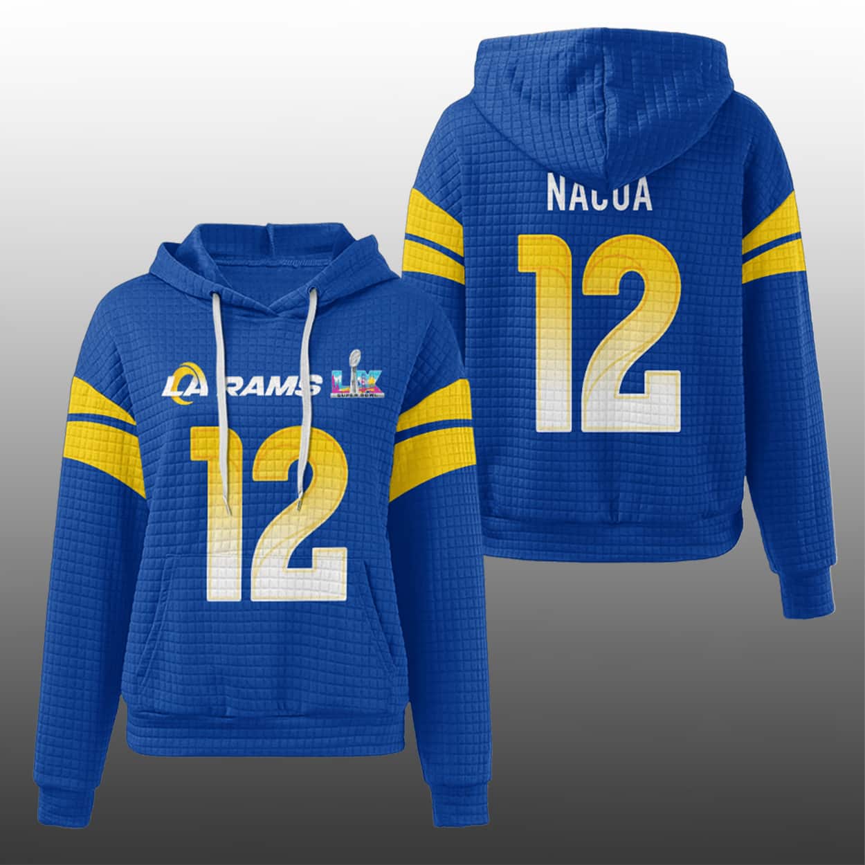 Celebrate Rams pride with the Rams Puka Nacua 12 SB LX Waffle Hoodie—bold graphics, electric energy, and undeniable fan flair.