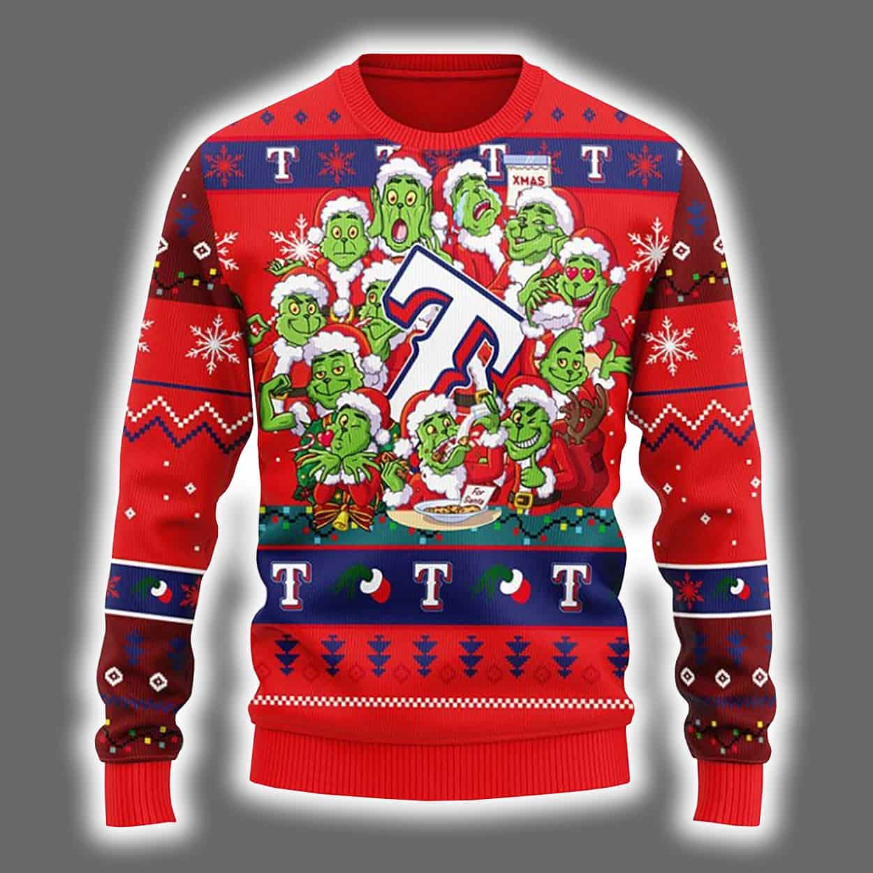 This isn’t your grandma’s Christmas sweater. It’s a playful rebellion against the ordinary, designed for fans who love their baseball with a side of holiday mischief. The twelve Grinchy figures bring a humorous twist to traditional cheer, while the Rangers branding keeps your loyalty front and center. It’s a wearable wink to those who dare to stand out and celebrate with flair.