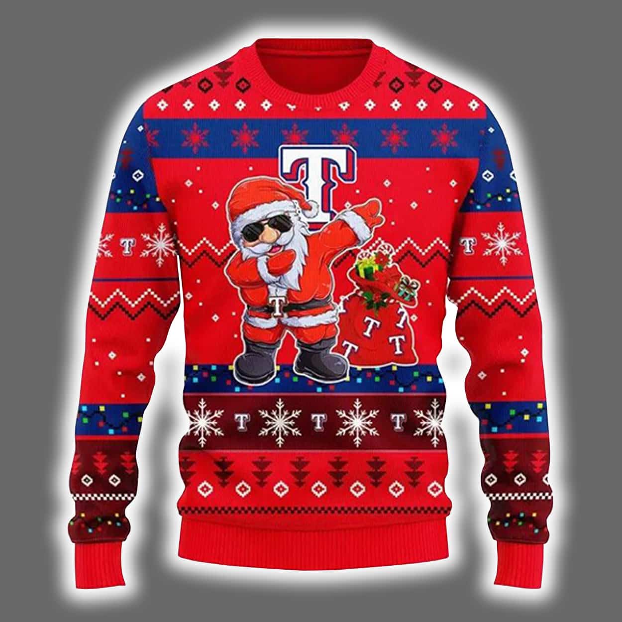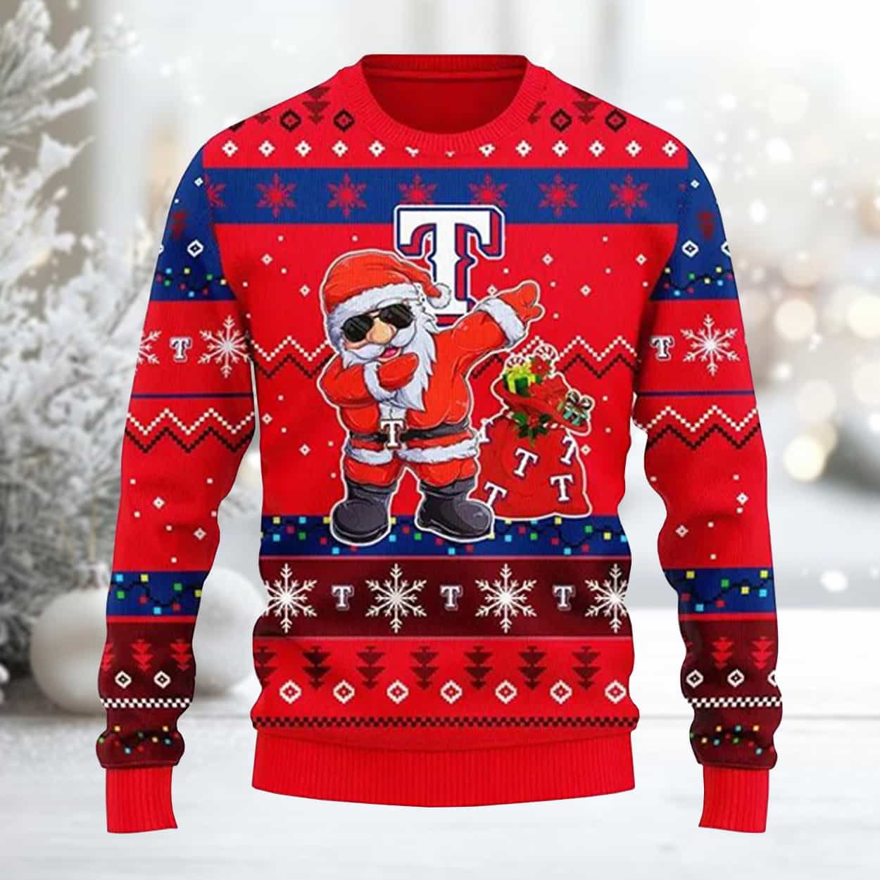 Get festive with flair in the Rangers Dabbing Santa Claus Ugly Christmas Sweater—a bold blend of holiday cheer and Texas Rangers pride that’s perfect for fans who love to stand out.